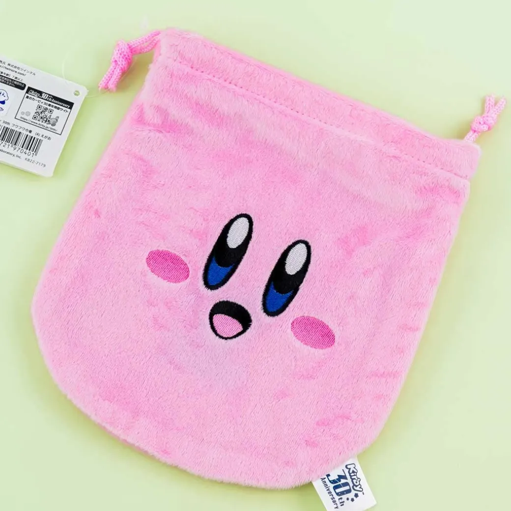 - A kawaii drawstring pouch featuring Kirby giving a big smile