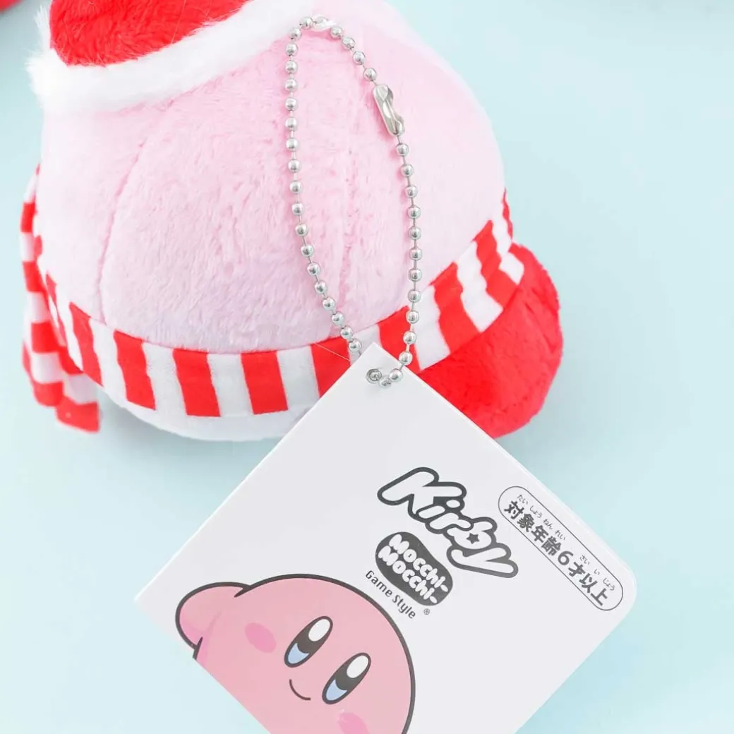 - A medium-sized Kirby plush wearing a holiday costume that doubles as a charm