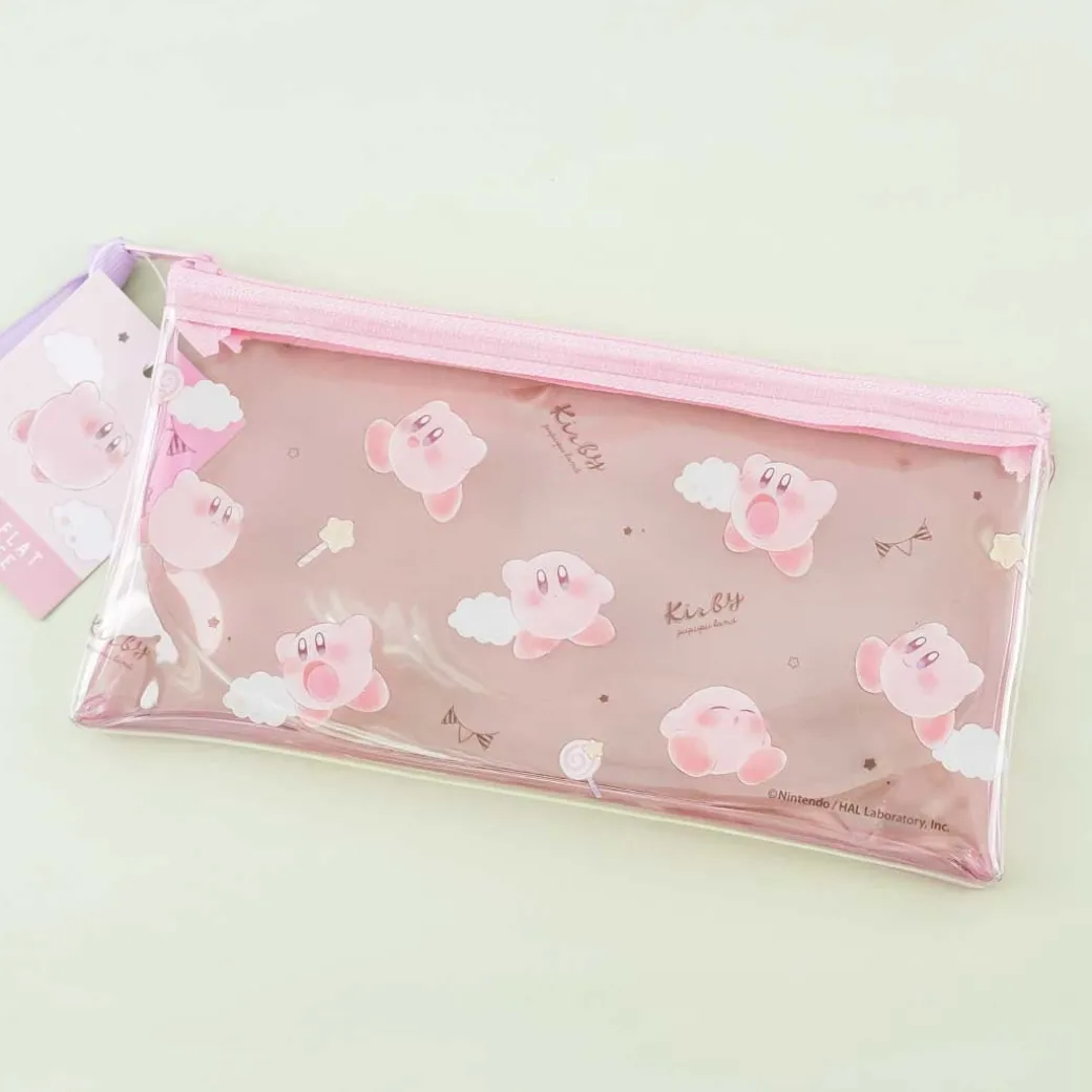 - A kawaii zippered transparent case illustrated with Kirby and the clouds