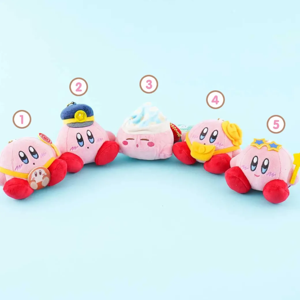 - A kawaii mini Kirby plushie charm wearing a cute outfit