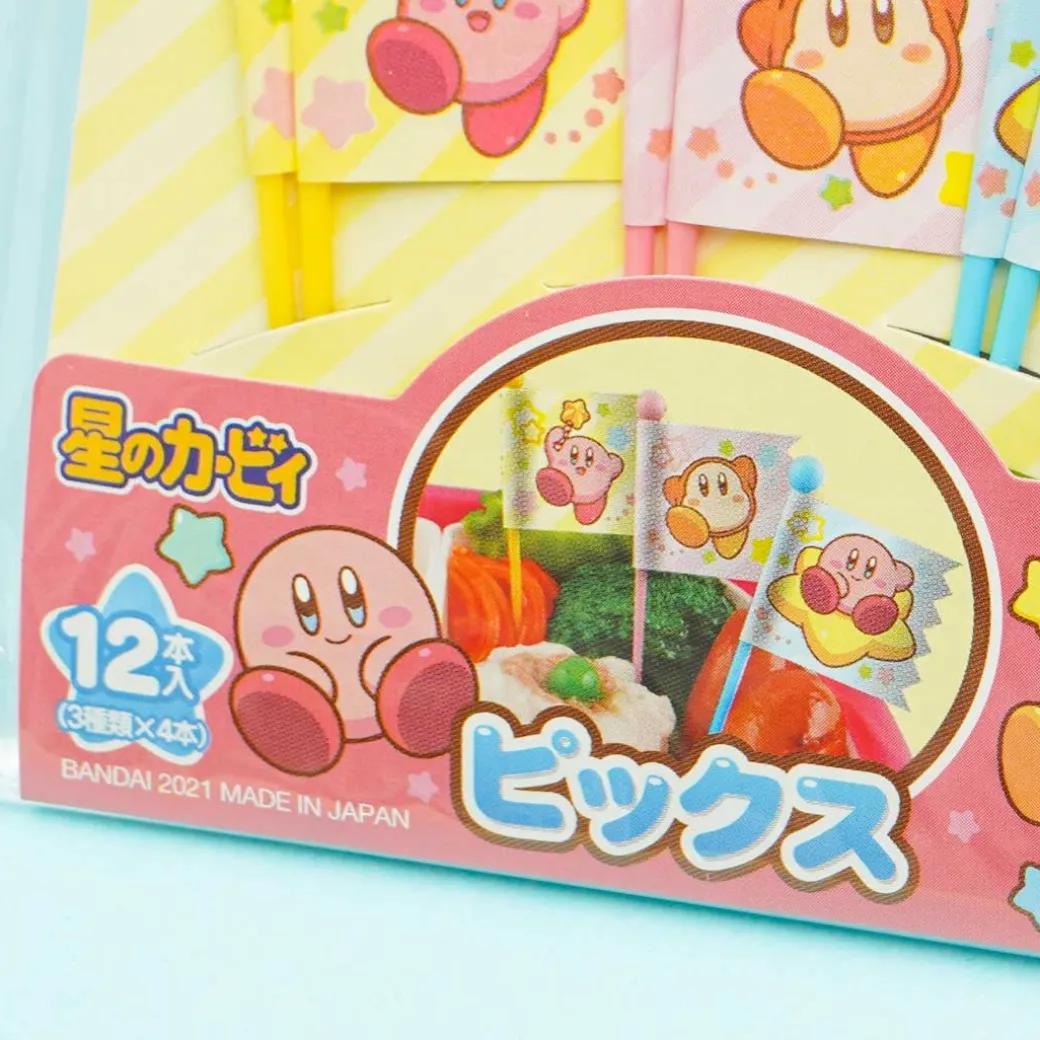 - A kawaii set of flag-shaped food picks illustrated with Kirby characters