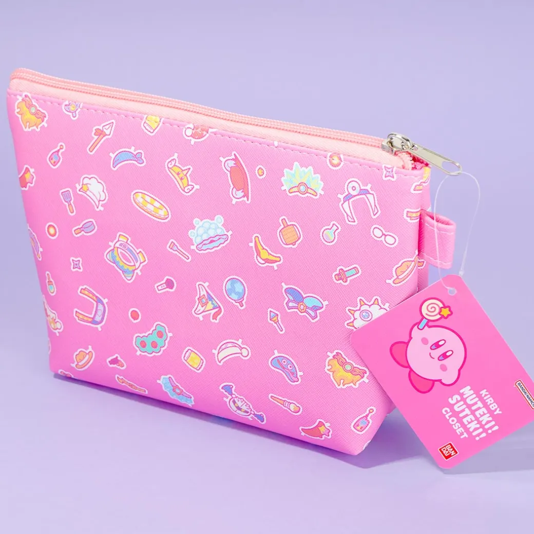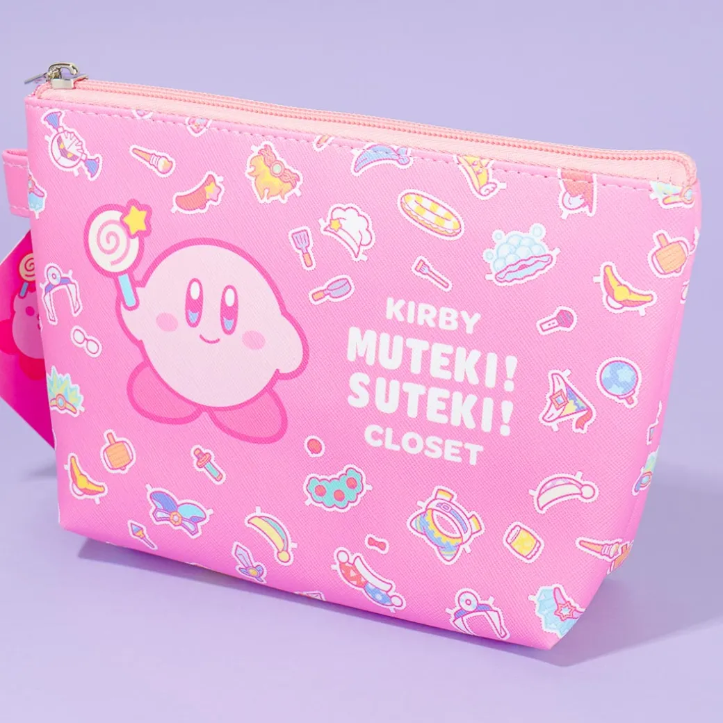 Keep your comb, lip balm, face mask, and other daily essentials inside this kawaii zippered pouch! It has super cute illustrations of Kirby and his favorite costumes and weapons. It has a special triangle-shaped base.