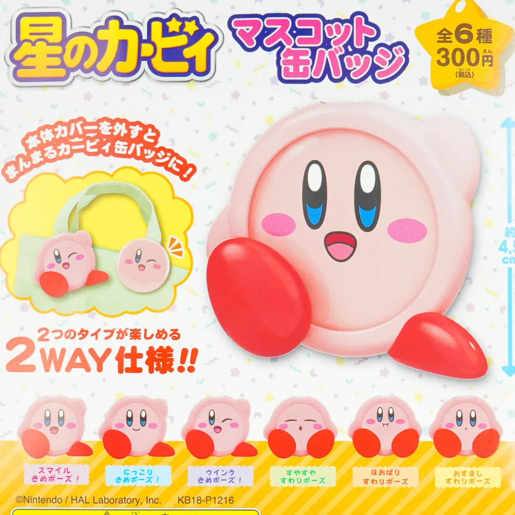 Kawaii-fy your favorite backpack with this super cute 2-way decor! It features a random facial expression of Kirby and can be used as a bag charm or when you remove the silicone cover, becomes a tin can badge. This colorful gachapon capsule comes with a random charm, so it’ll always be a random cute surprise what design you will get!