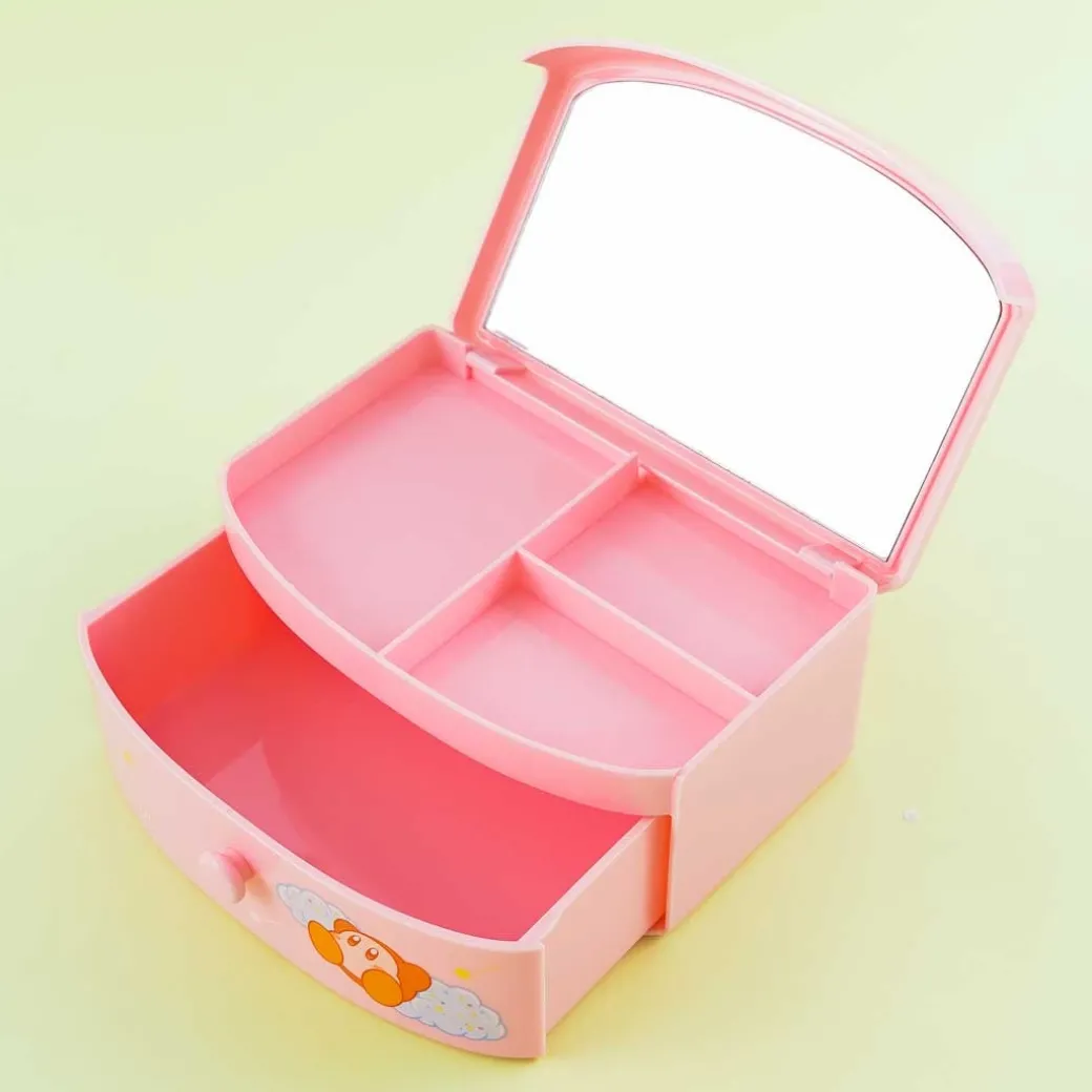 - A kawaii pink accessories box with illustrations of Kirby, his Warp Star, and Waddle Dee