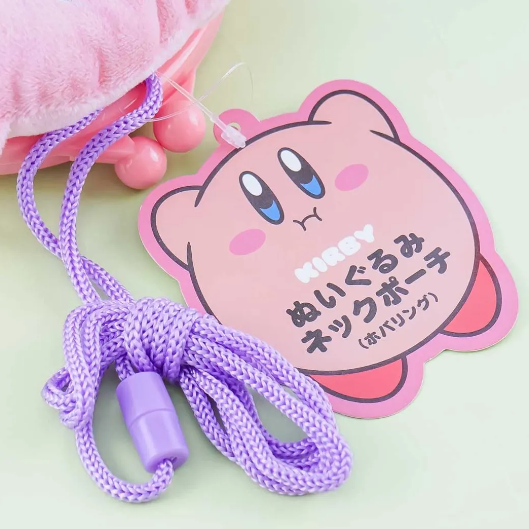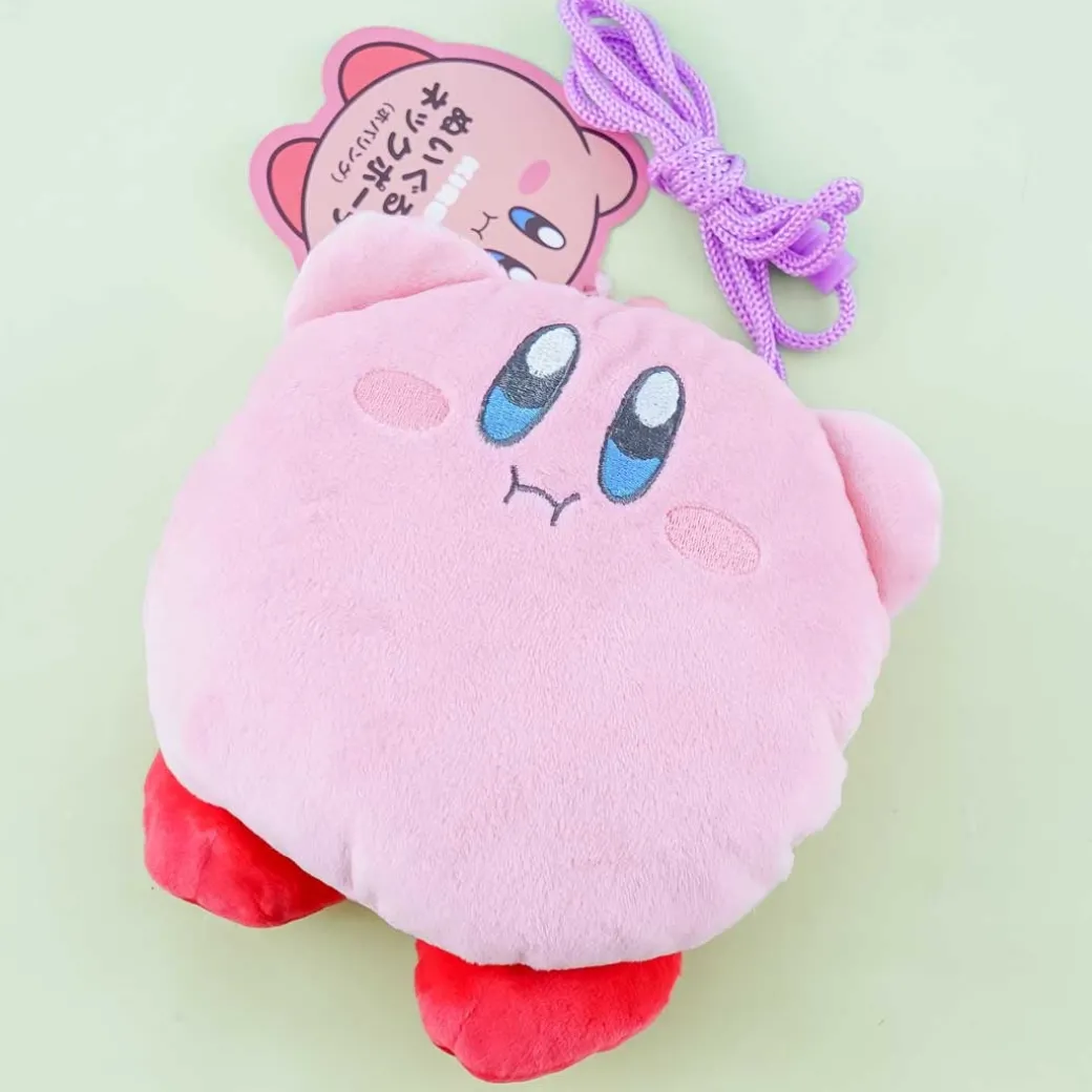 - A kawaii Kirby plushie pouch with a plastic clasp closure