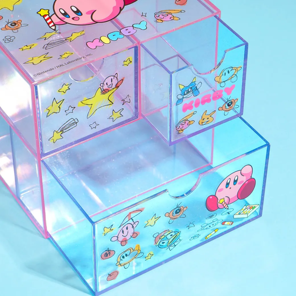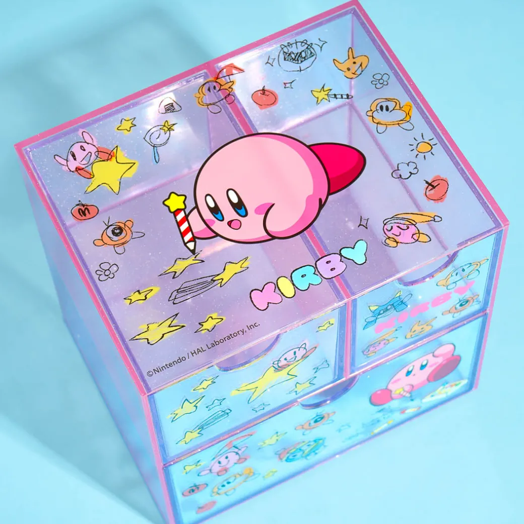 Use this kawaii mini chest to keep your desk area neat and tidy! It features cute prints of Kirby and doodles of stars and his friends. This chest has three clear multi-sized drawers so you can separate and sort your accessories.