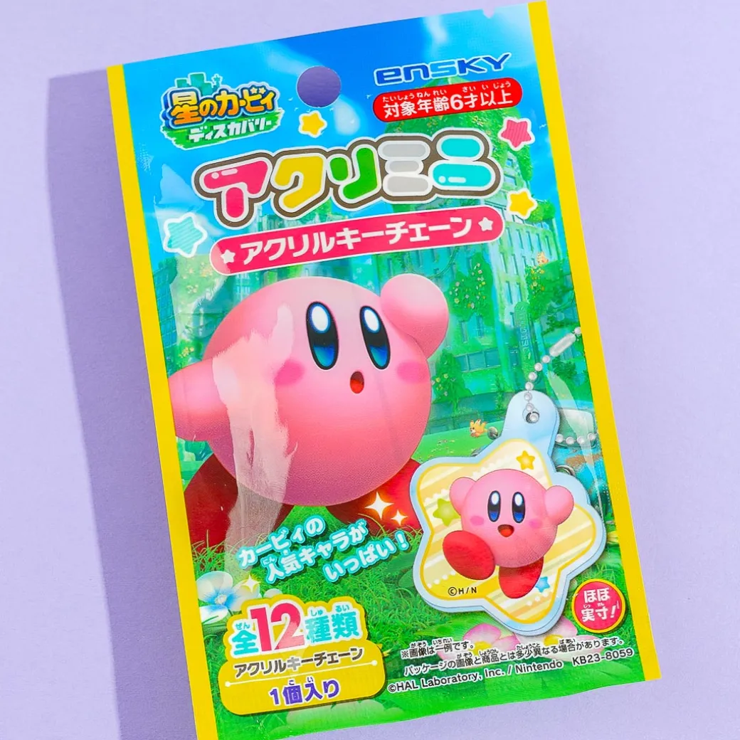 This star-shaped acrylic charm features cute illustrations from the video game Kirby and the Forgotten Land. Attach it to your bag using the ball chain for a touch of kawaii!