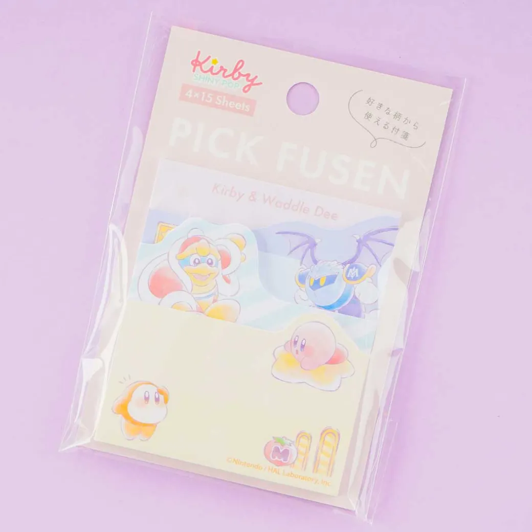 Mark important book pages by using these kawaii sticky notes! The set has four various sizes with four different illustrations of Kirby and Waddle Dee fighting off enemies.
