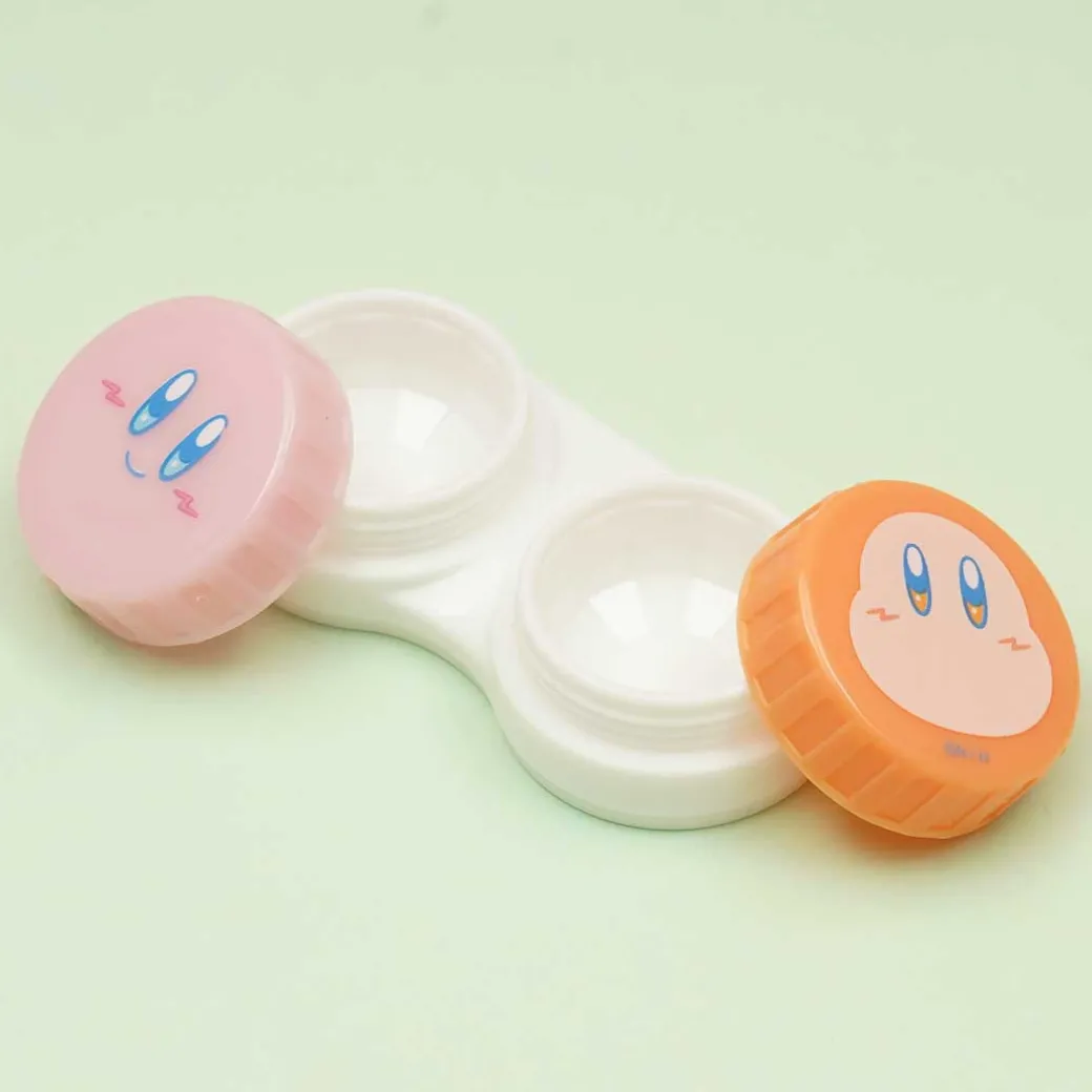 Store your contact lenses safely inside this kawaii case! The left screw cap is decorated with a Kirby print and the other cap has an illustration of Waddle Dee.