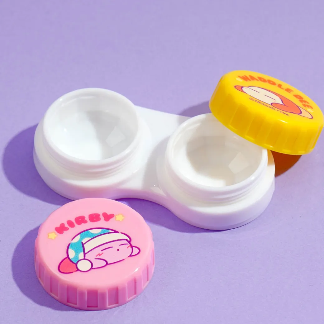 Store your contact lenses in this super cute case! It features illustrations of Kirby and Waddle Dee sleeping peacefully. The left and right caps come in different colors so you won’t mix them up!