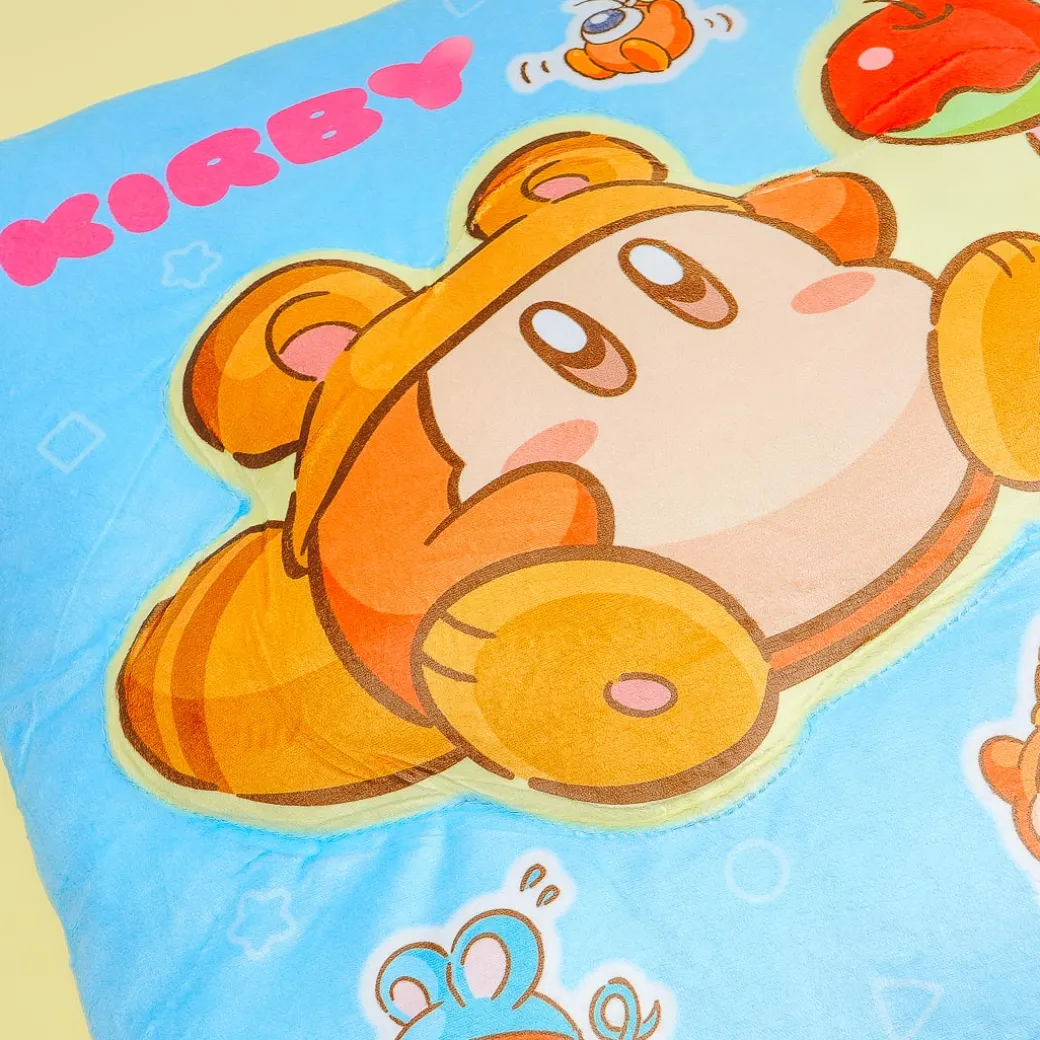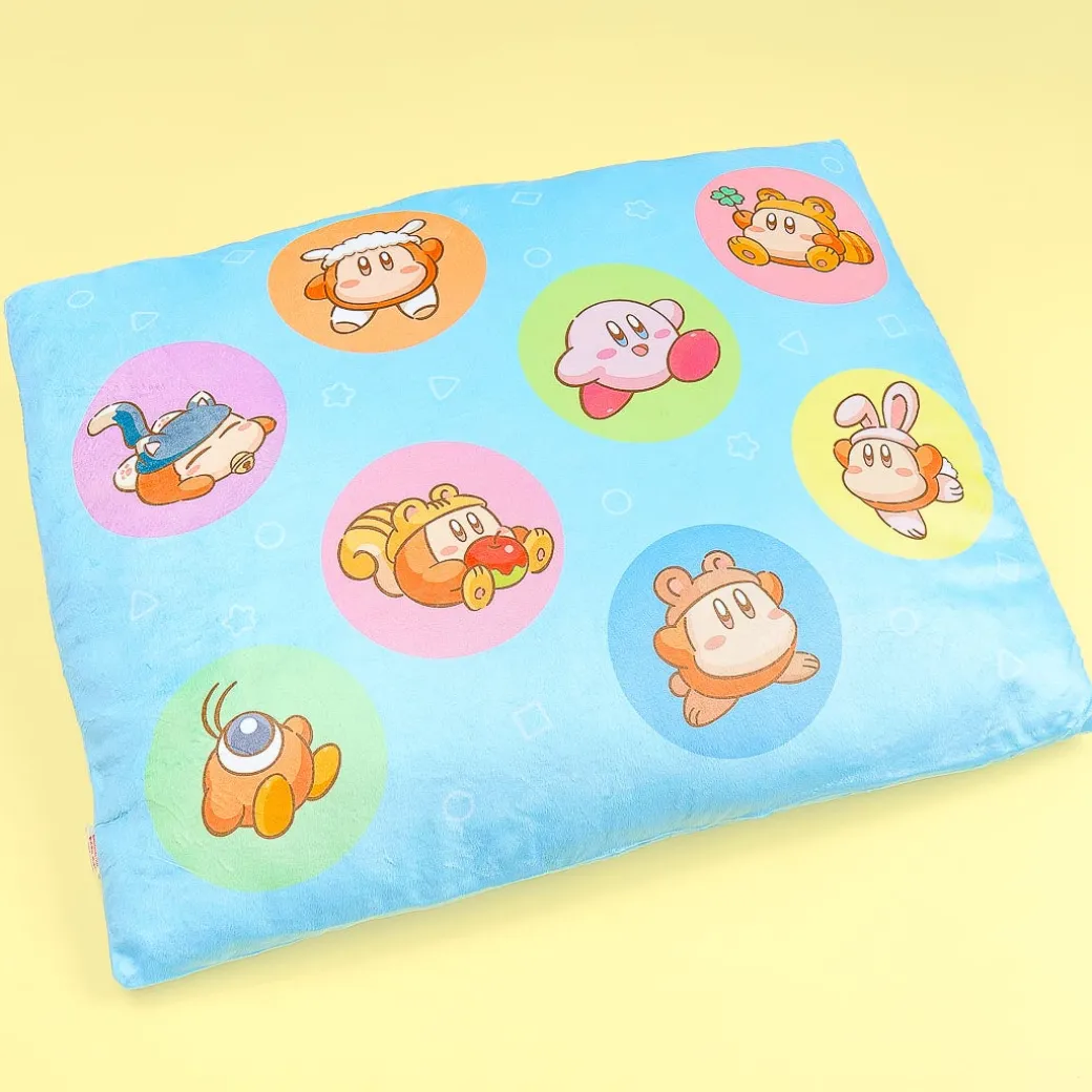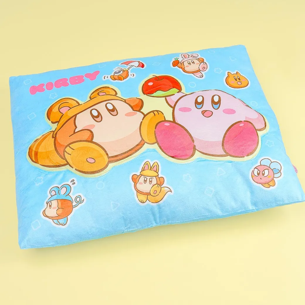 Place this small pillow on your bed or sofa for a touch of kawaii! It showcases cute illustrations of Kirby and his friend Waddle Dee wearing different costumes.