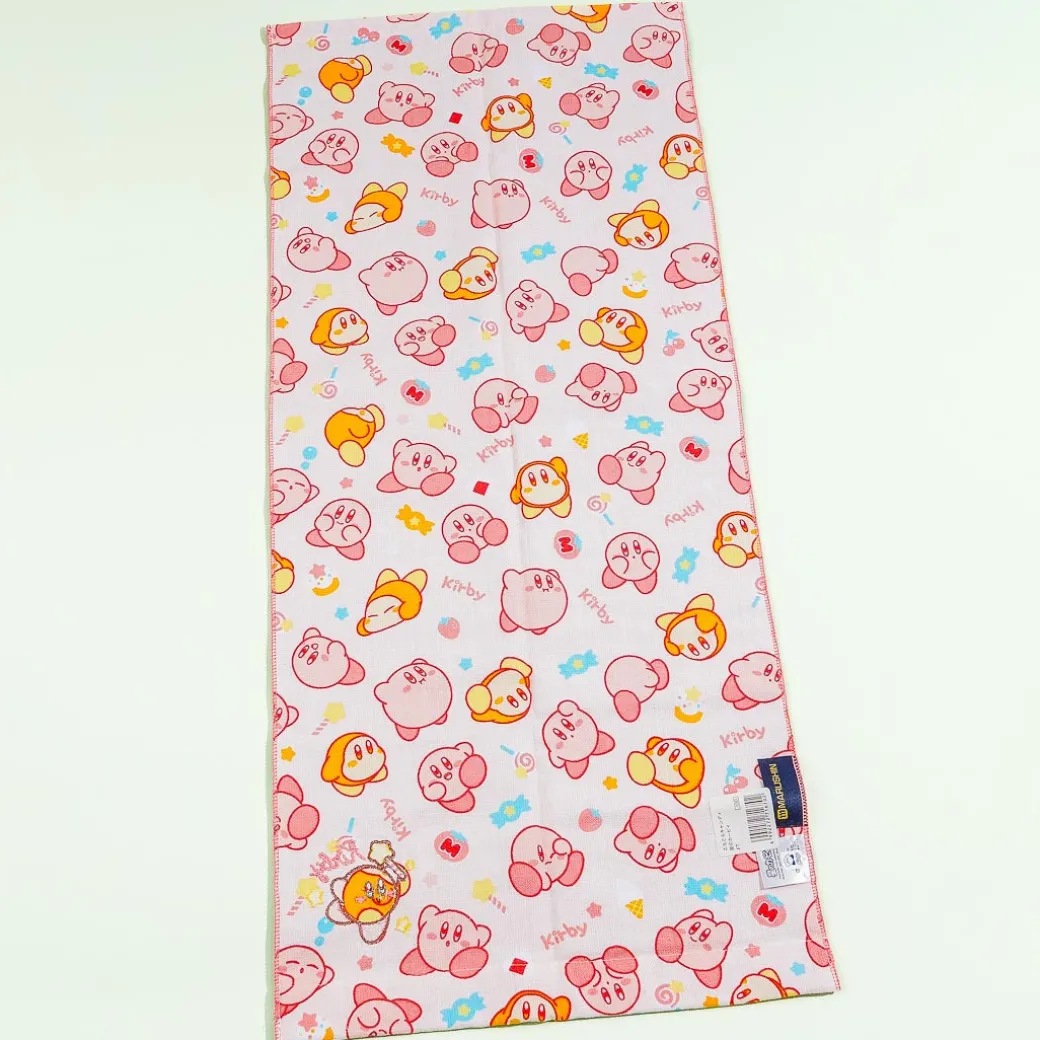 Dry yourself off with the help of this super kawaii towel. It’s covered in prints of Kirby and Waddle Dee having fun playing with candy! The back of this towel is made of gauze so it dries really quickly.