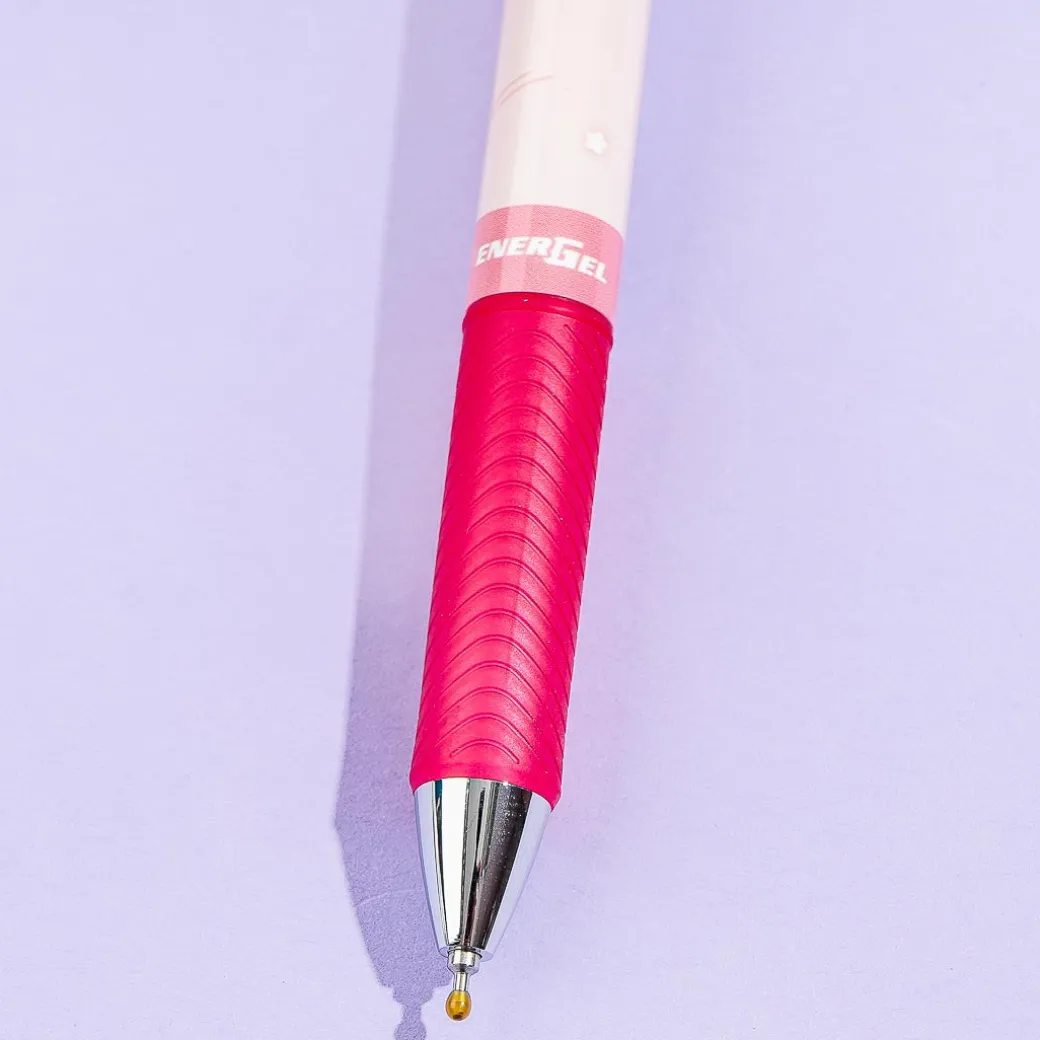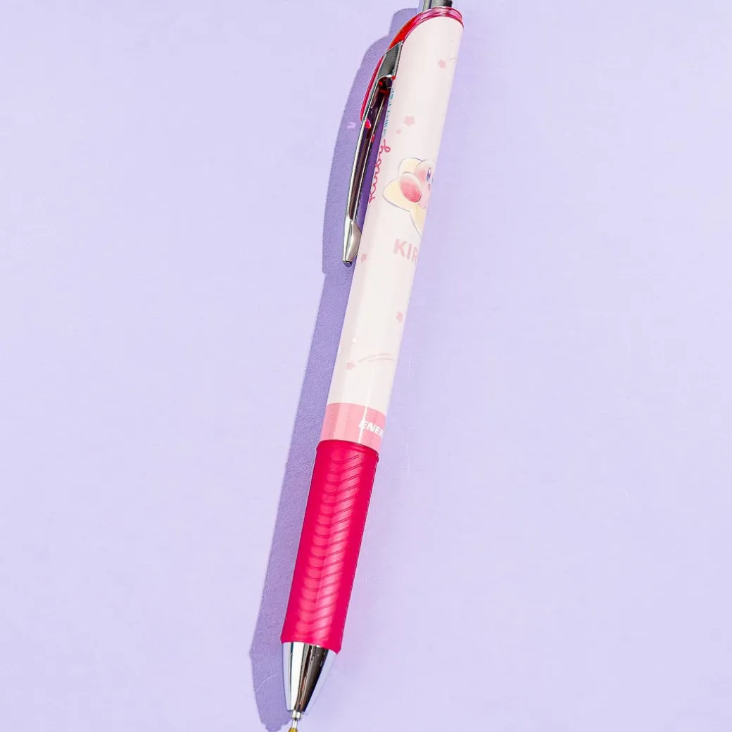 Use this handy click pen when writing letters to your besties! It has a special rubber grip and is decorated with super cute prints of Kirby sitting on a Warp Star. This pen was created in collaboration with Kirby and the famous EnerGel pen series from the Japanese company, Pentel.