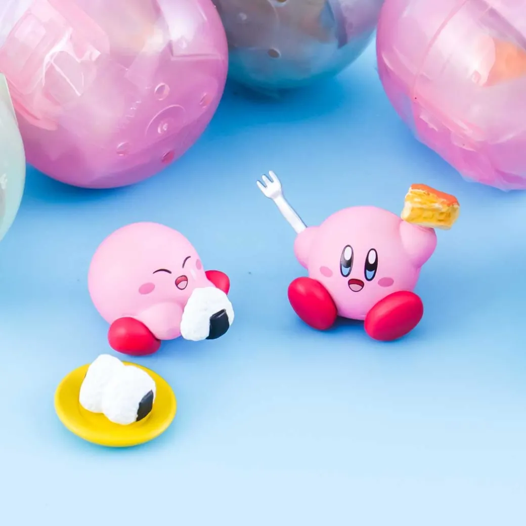 - A gachapon capsule with a Kirby collectible from the Kirby’s Dream Land Manmaru Mogumogu Picnic collection