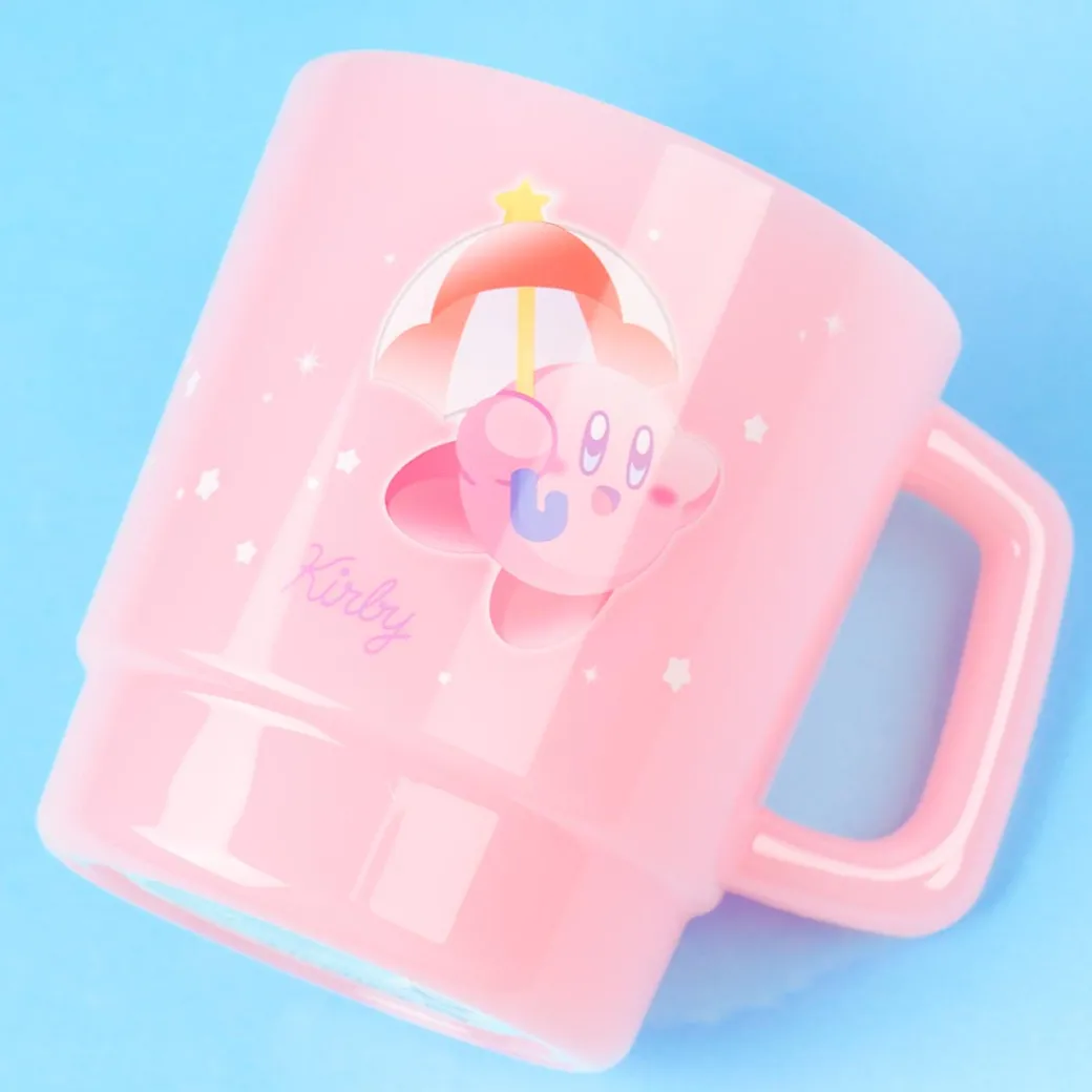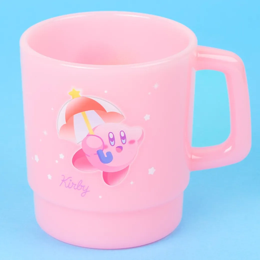Sip your favorite hot or cold chocolate drink using this kawaii mug! It has a super cute print of Kirby flying off using a parasol. This mug can be stacked on top of other similar-shaped cups.