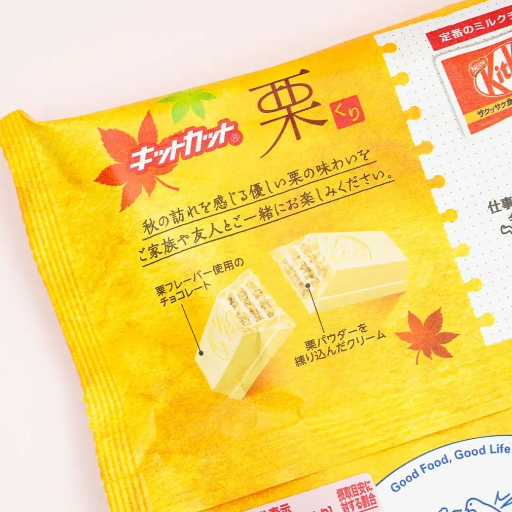 - A bag of white chocolate wafer bars that taste like chestnuts