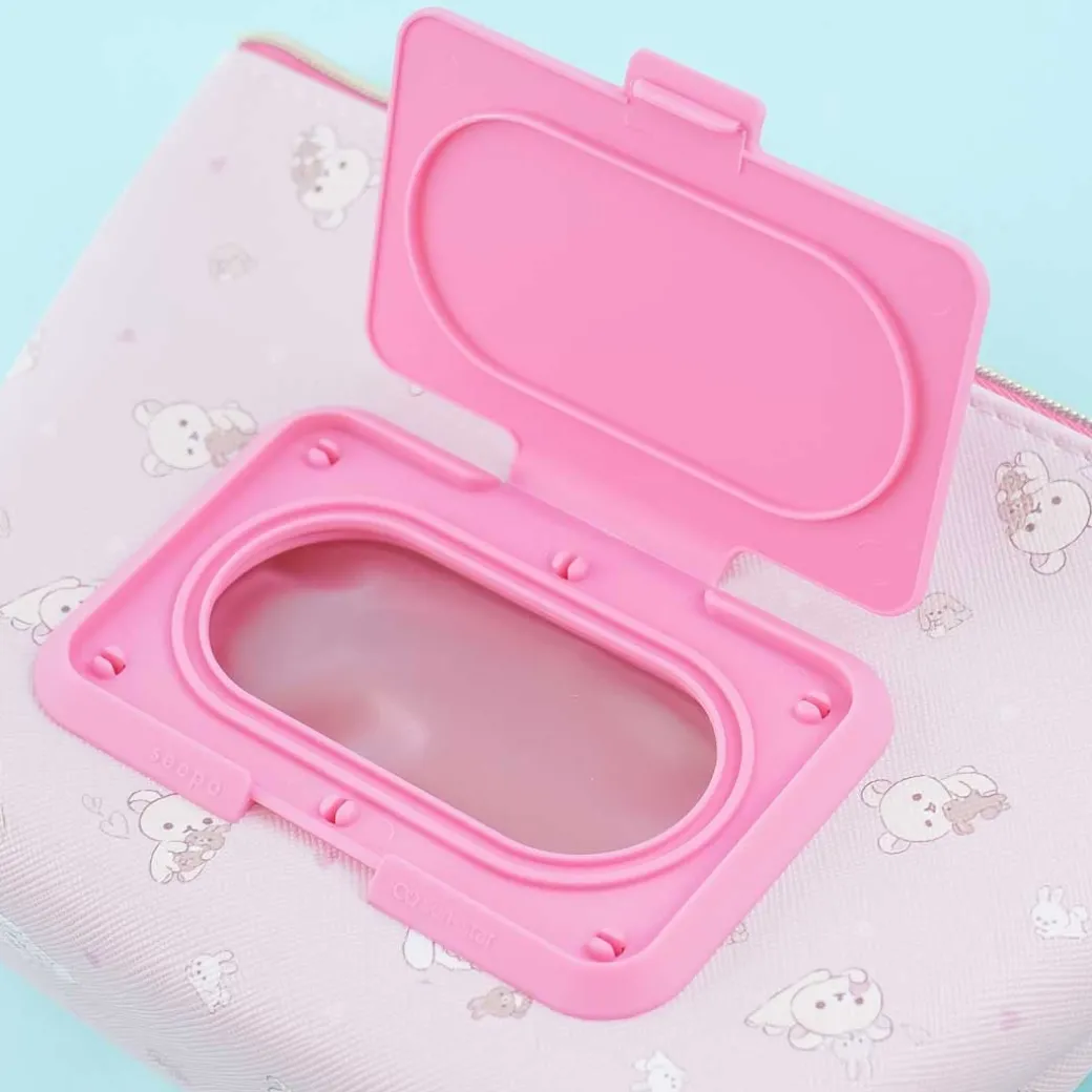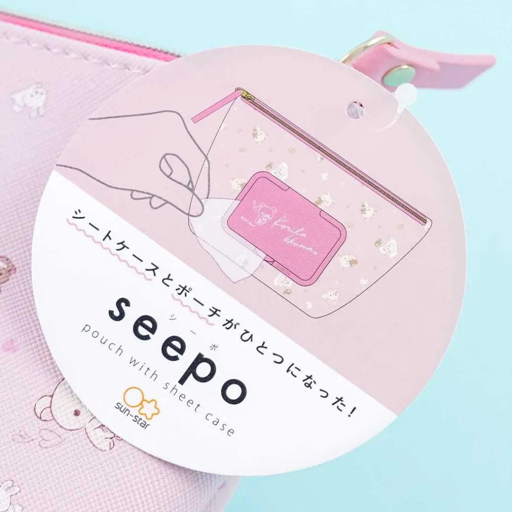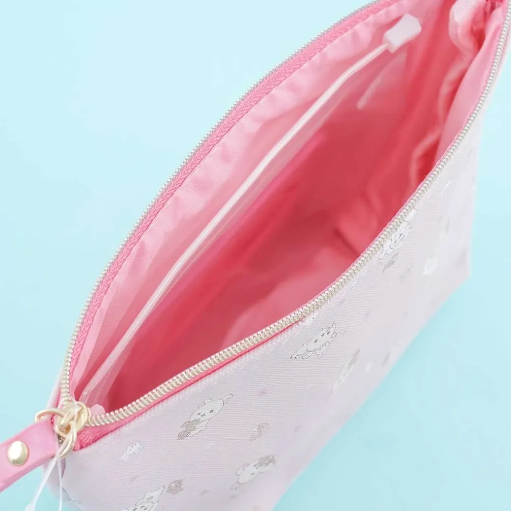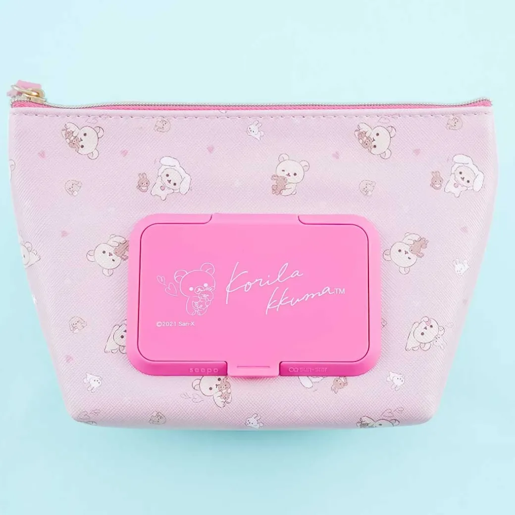 - A cute zippered pouch featuring prints of Korilakkuma playing with bunnies