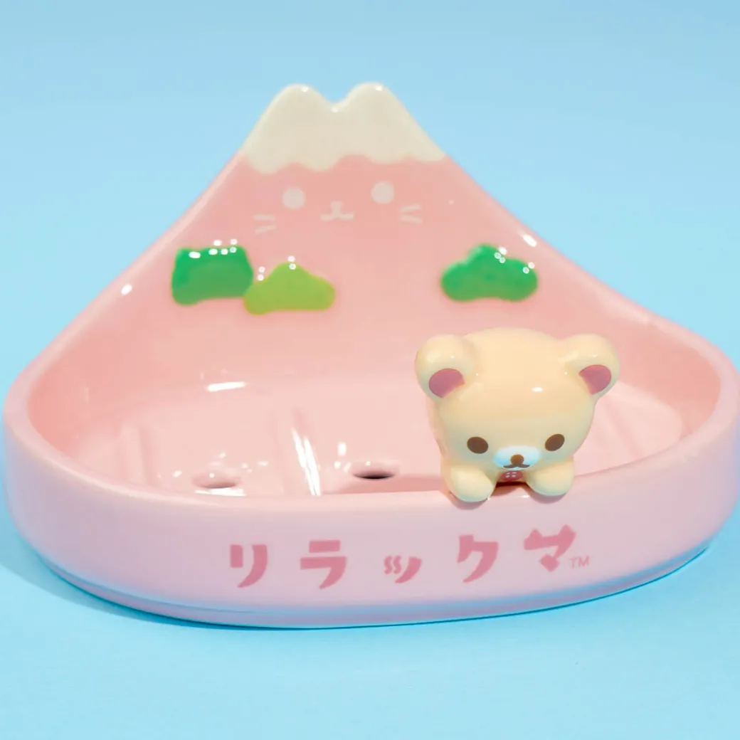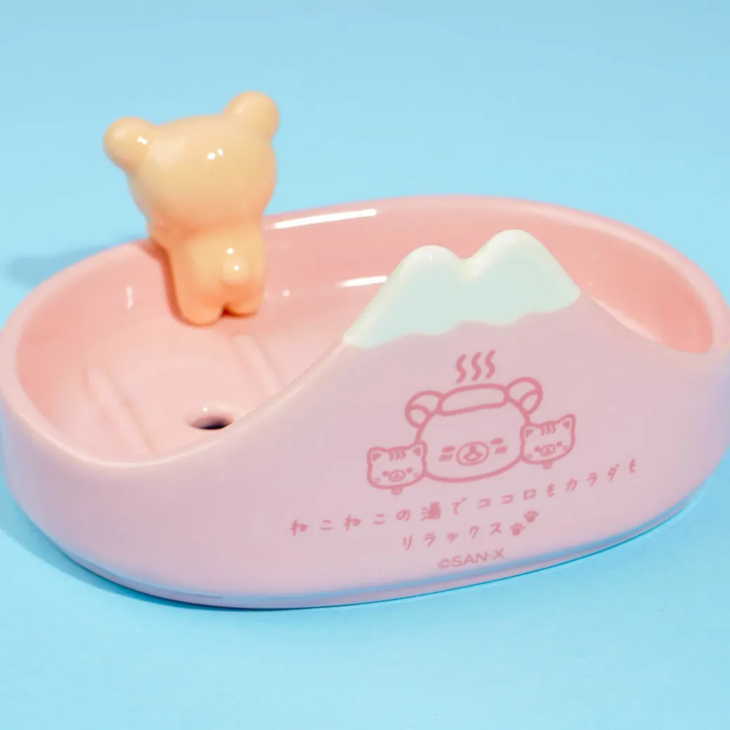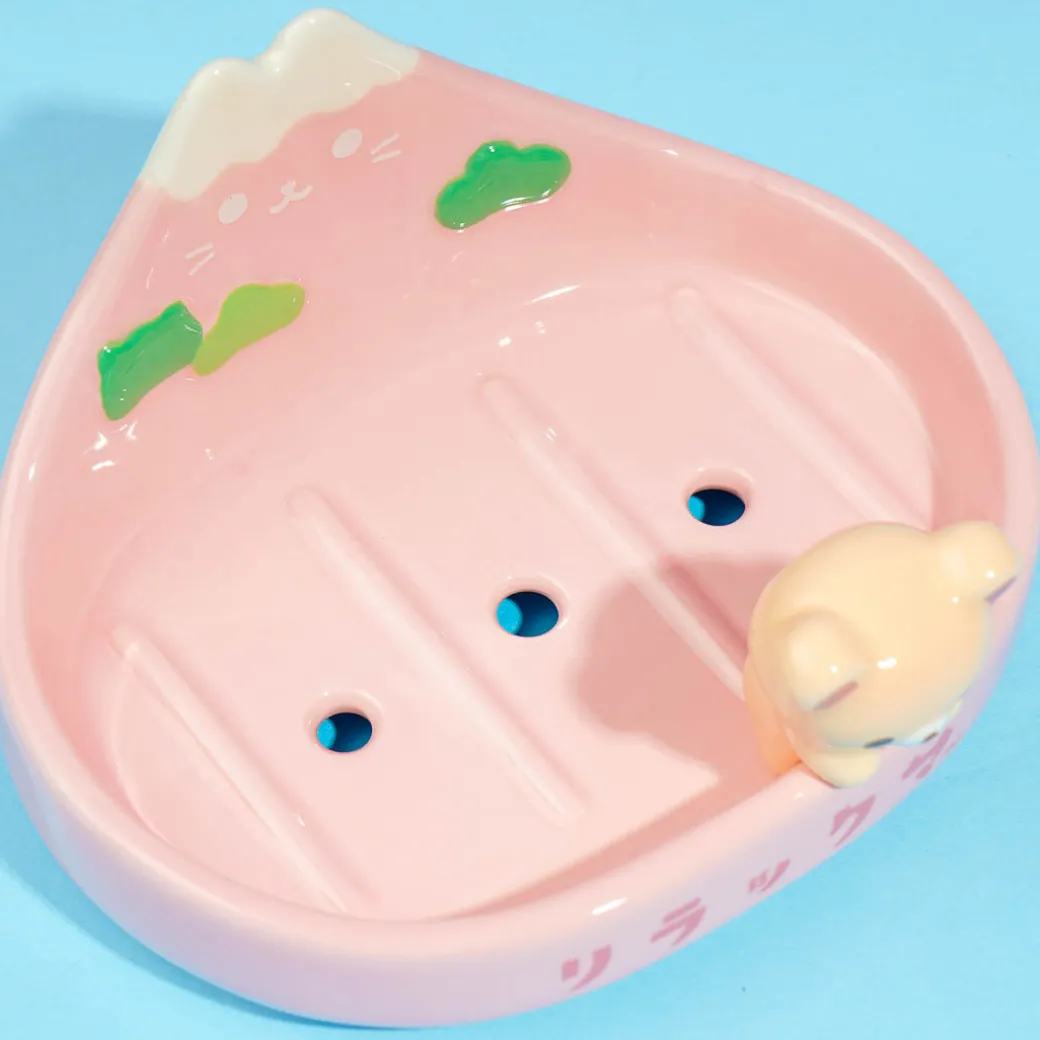 This ceramic soap dish can add a dose of cuteness to your bathroom! It features a cute 3D design with Korilakkuma and a cat mountain. This dish has holes to drain the liquid from your soap bar.
