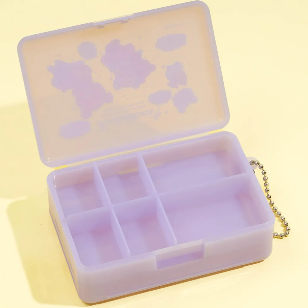 Stay organized with this super cute pill case! It showcases prints of Rilakkuma and Korilakkuma in a sky filled with fluffy cotton candy. It has double-sided openings – one with a partition and the other with open space.