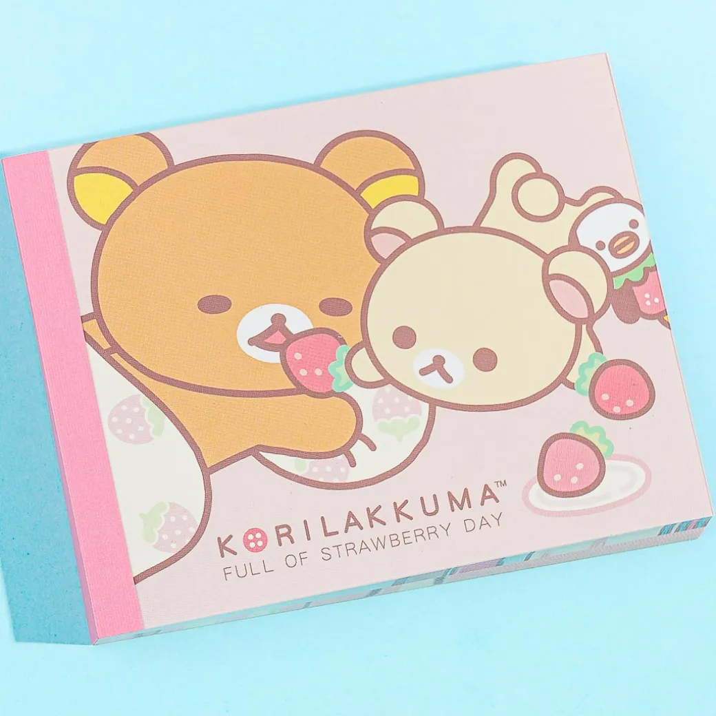 Have fun scribbling short reminders using this super kawaii memo pad! It has cute illustrations of Korilakkuma eating strawberries with friends during a picnic! This special design was created for the 20th-anniversary celebration of Korilakkuma’s first appearance.
