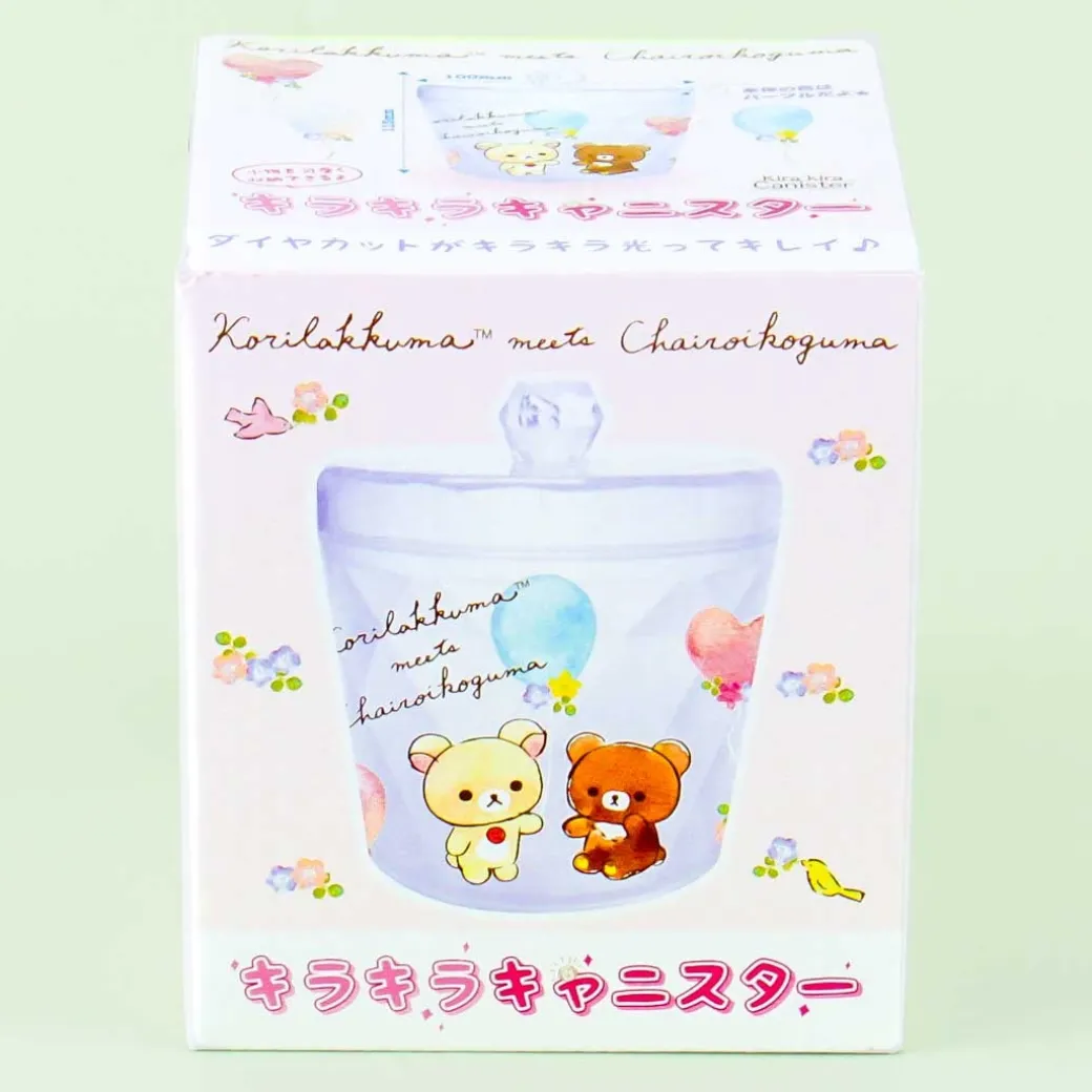 - A kawaii transparent canister illustrated with Korilakkuma meeting Chairoikoguma