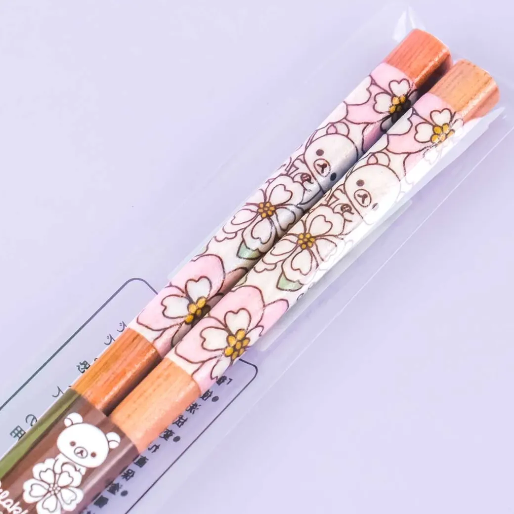 - A kawaii pair of chopsticks featuring prints of Korilakkuma with cherry blossoms