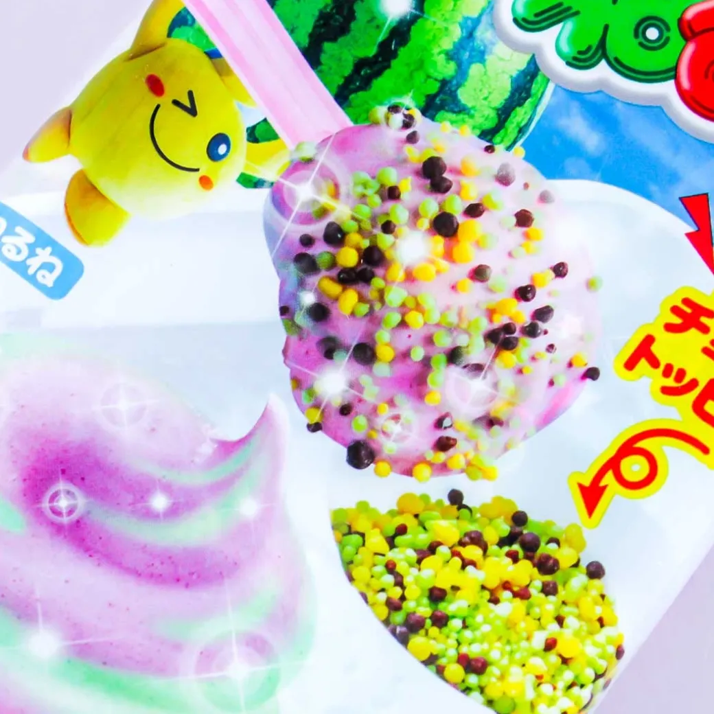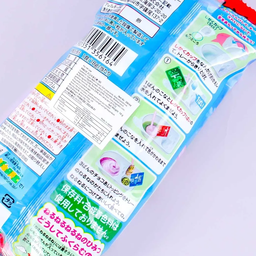 - Package contains 2 bags of powder, 1 bag of ramune toppings, 1 spoon, and 1 mold