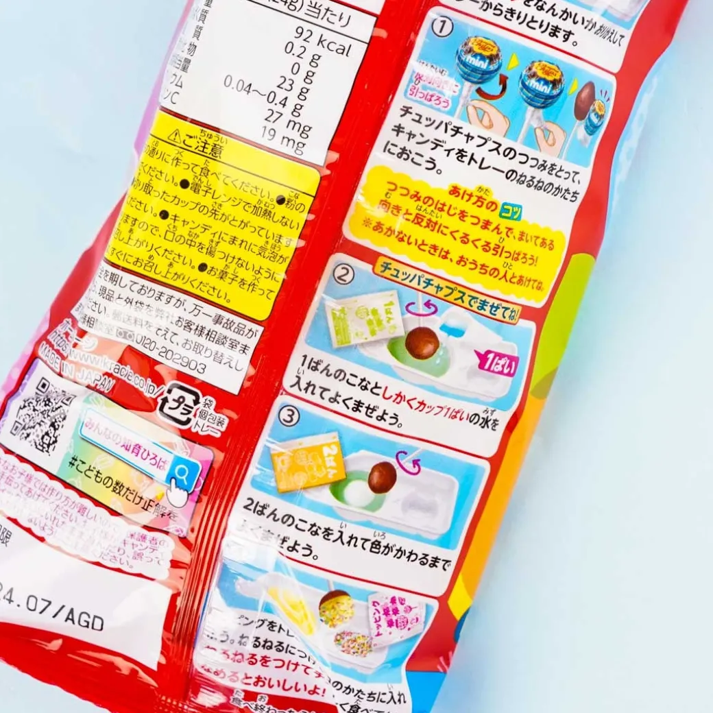 - Includes: 1 x plastic mold, 2 x powder sachets, 1 x candy dots sachet, and 1 x mini Chupa Chups cola lollipop