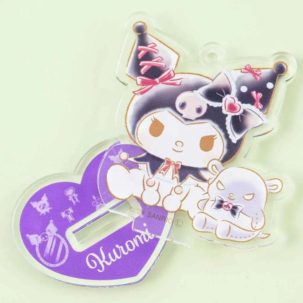 - A super kawaii 2-way acrylic heart stand featuring Kuromi sitting down