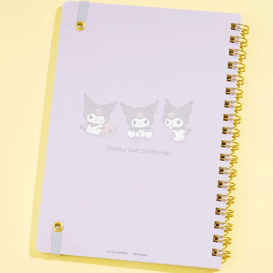 Jot down notes on the ruled lines of this super kawaii B6 ring notebook. It’s illustrated with Kuromi sitting down in style! This kawaii notebook has a rubber band to keep all your notes safe and secure.