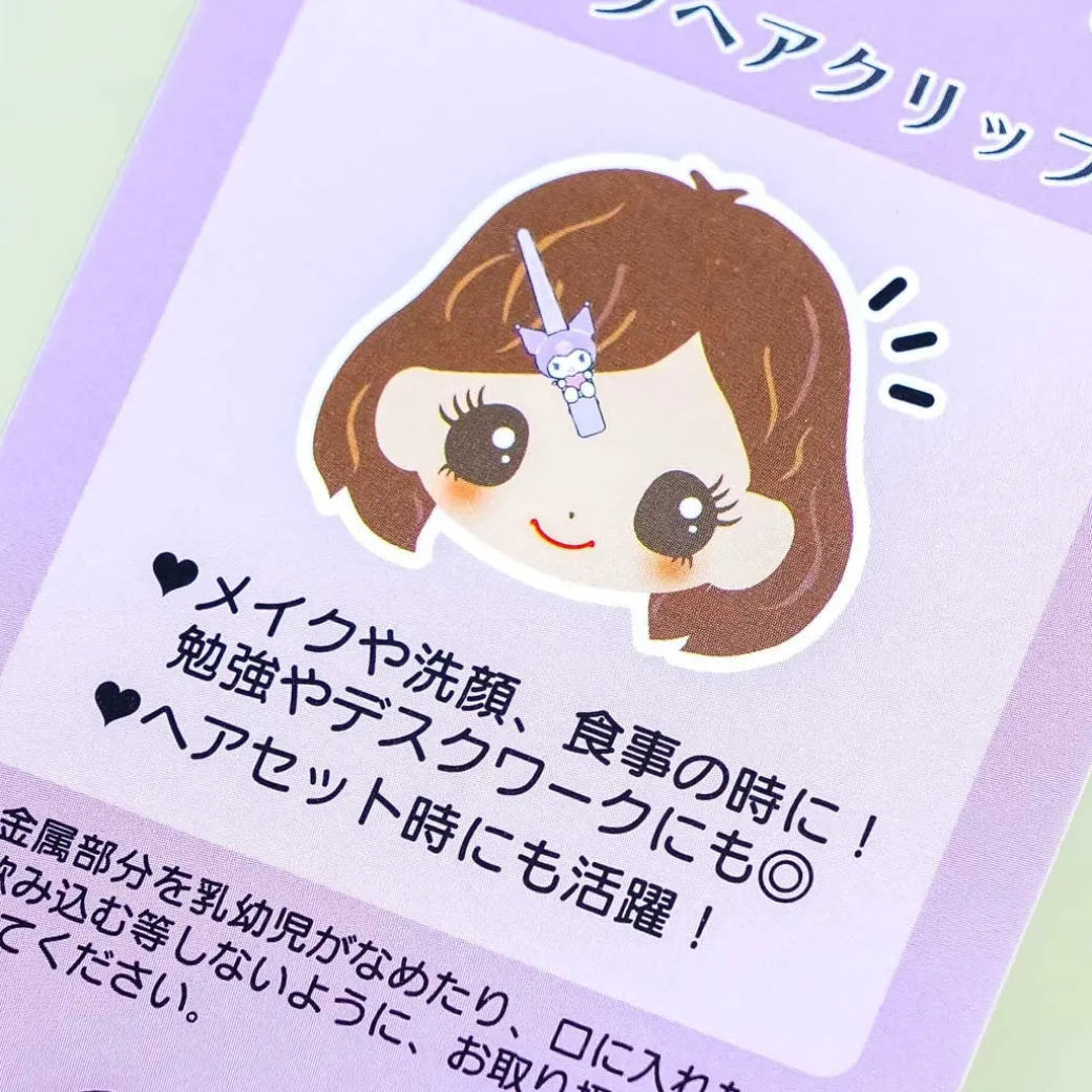 - A cute metallic long clip featuring a Kuromi charm with a shiny finish