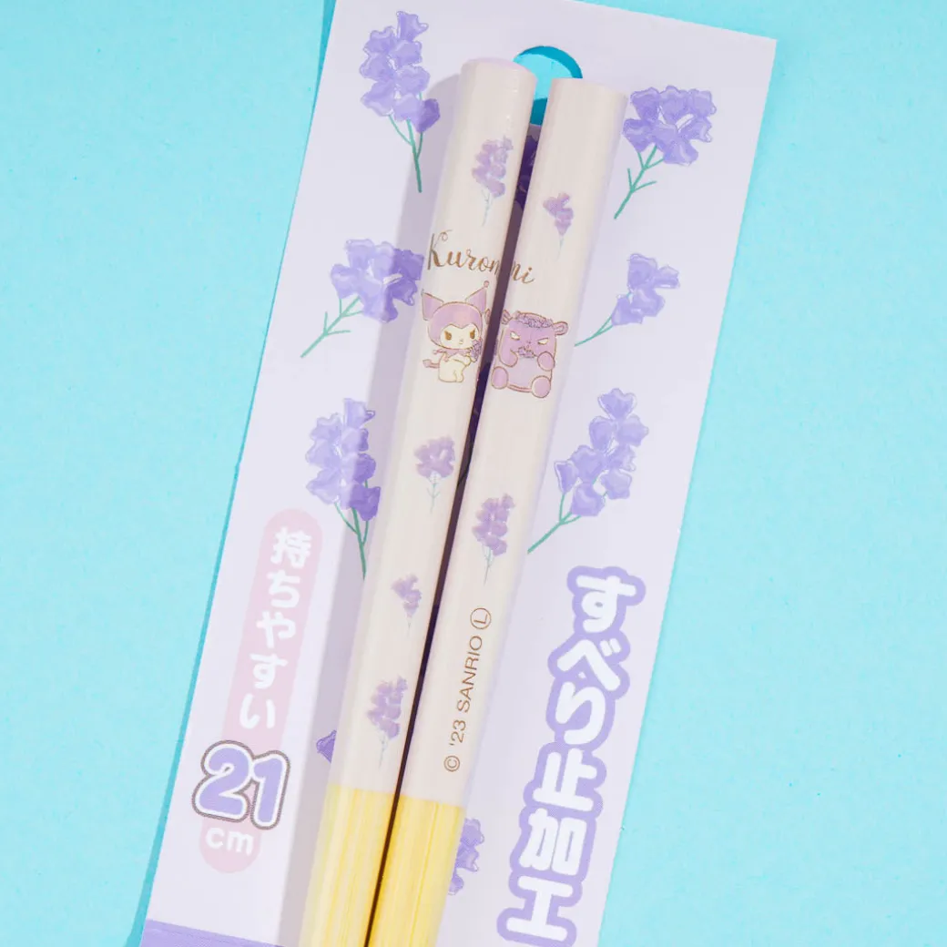 Eat your lunch kawaii style using this super cute pair of chopsticks! It features prints of Kuromi and Baku with lavender flowers.