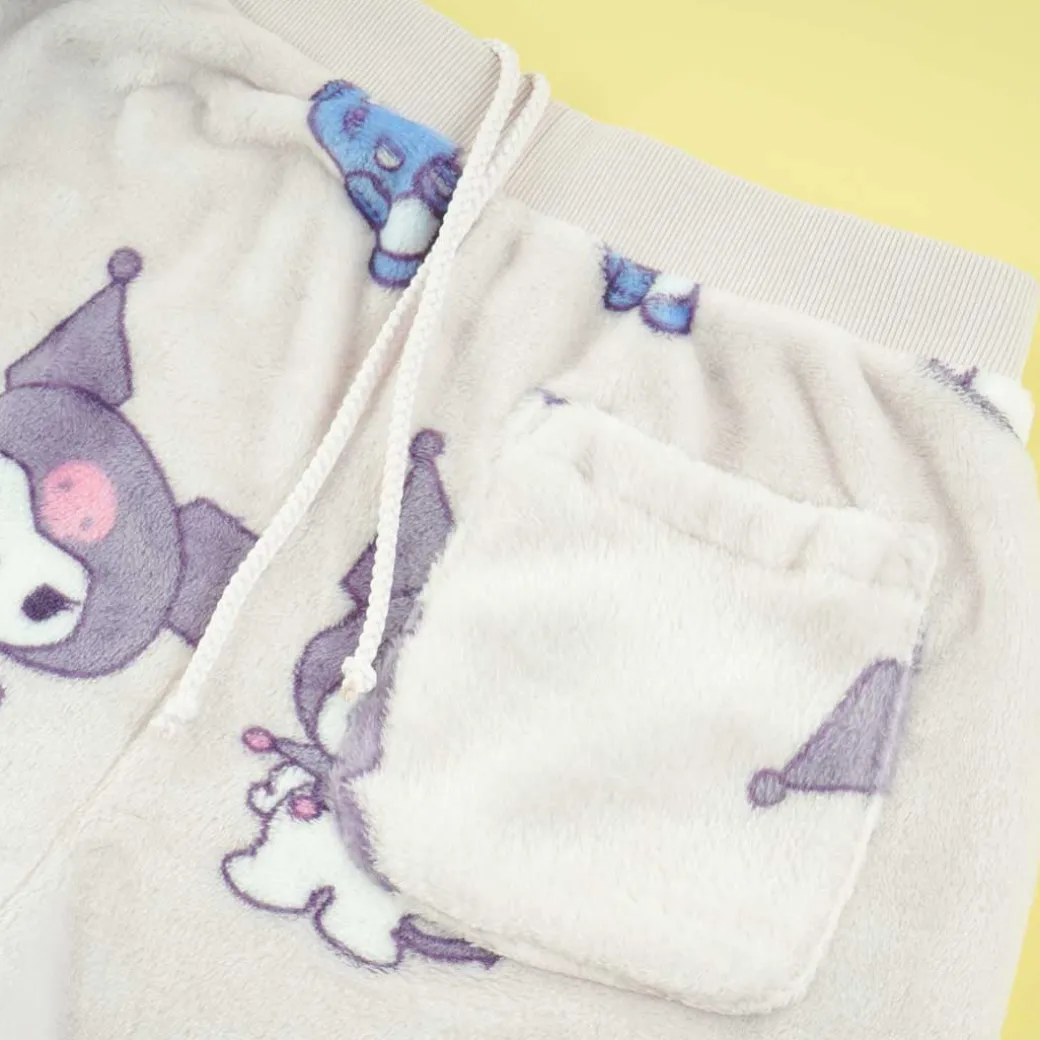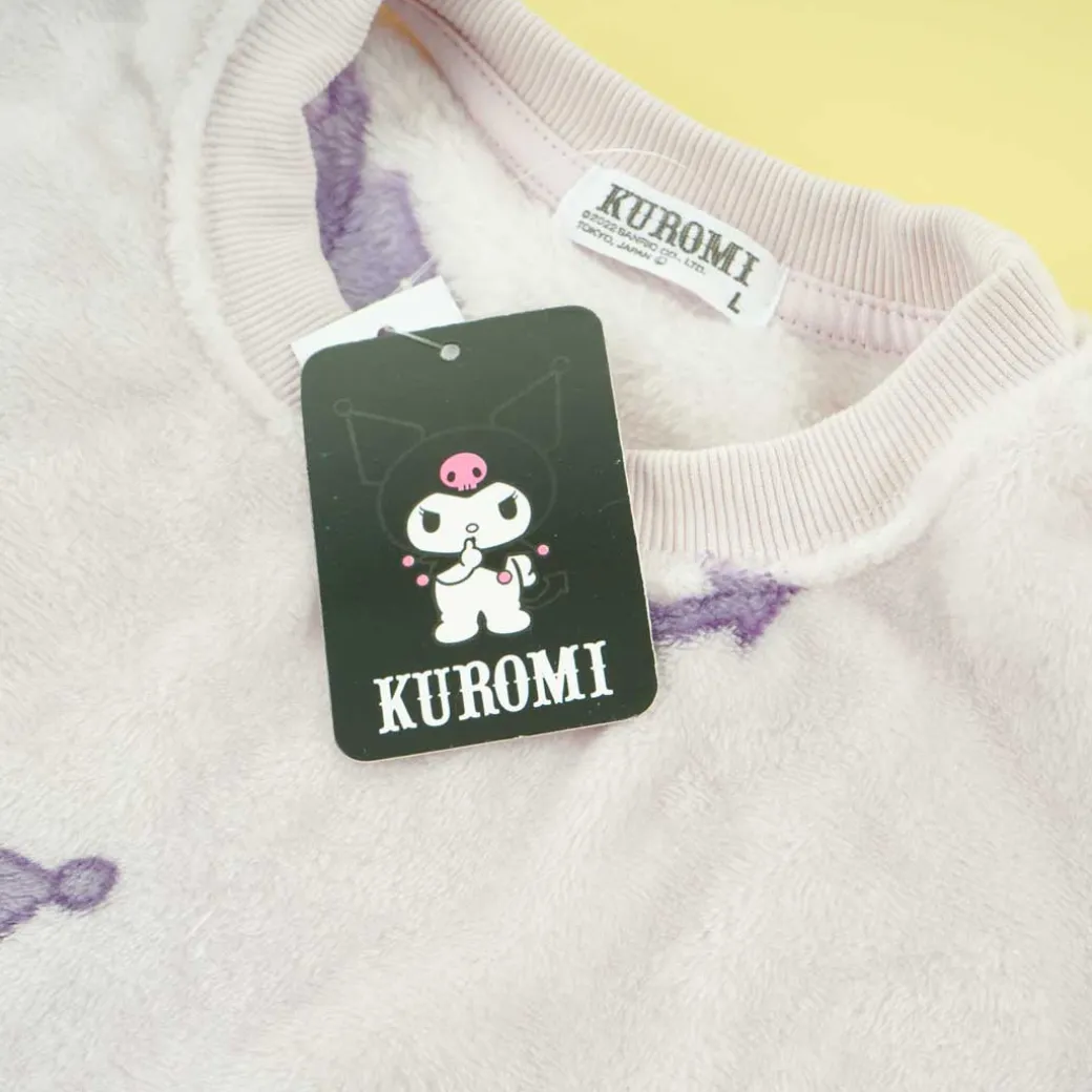 This super cute purple pajama set includes a long-sleeved shirt and a pair of pants. Both have matching prints of Kuromi with her sidekick, Baku! Stay comfy and cute indoors by wearing this kawaii set.