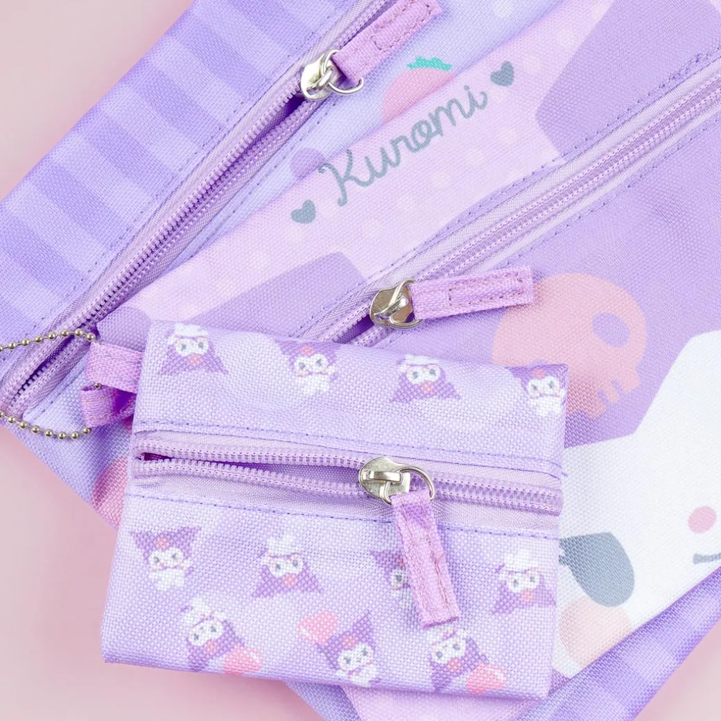 Organize your school supplies with this set of kawaii zippered flat pouches! This set features cute illustrations of a chubby Kuromi with heart-shaped balloons. Each pouch comes in a different size so you use them for different purposes.