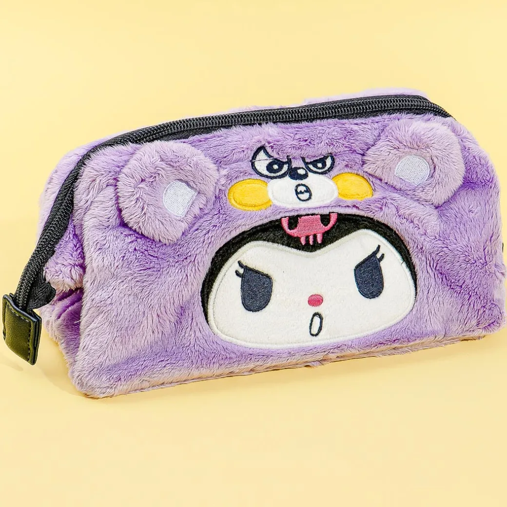 This kawaii pencil case features Kuromi wearing a furry purple bear costume! It has a unique wide-mouth metal frame that opens enough to fit more items inside. Use it to keep your favorite writing and sketching tools!