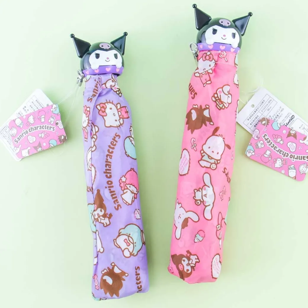 - A portable foldable umbrella featuring a handle shaped like Kuromi’s head
