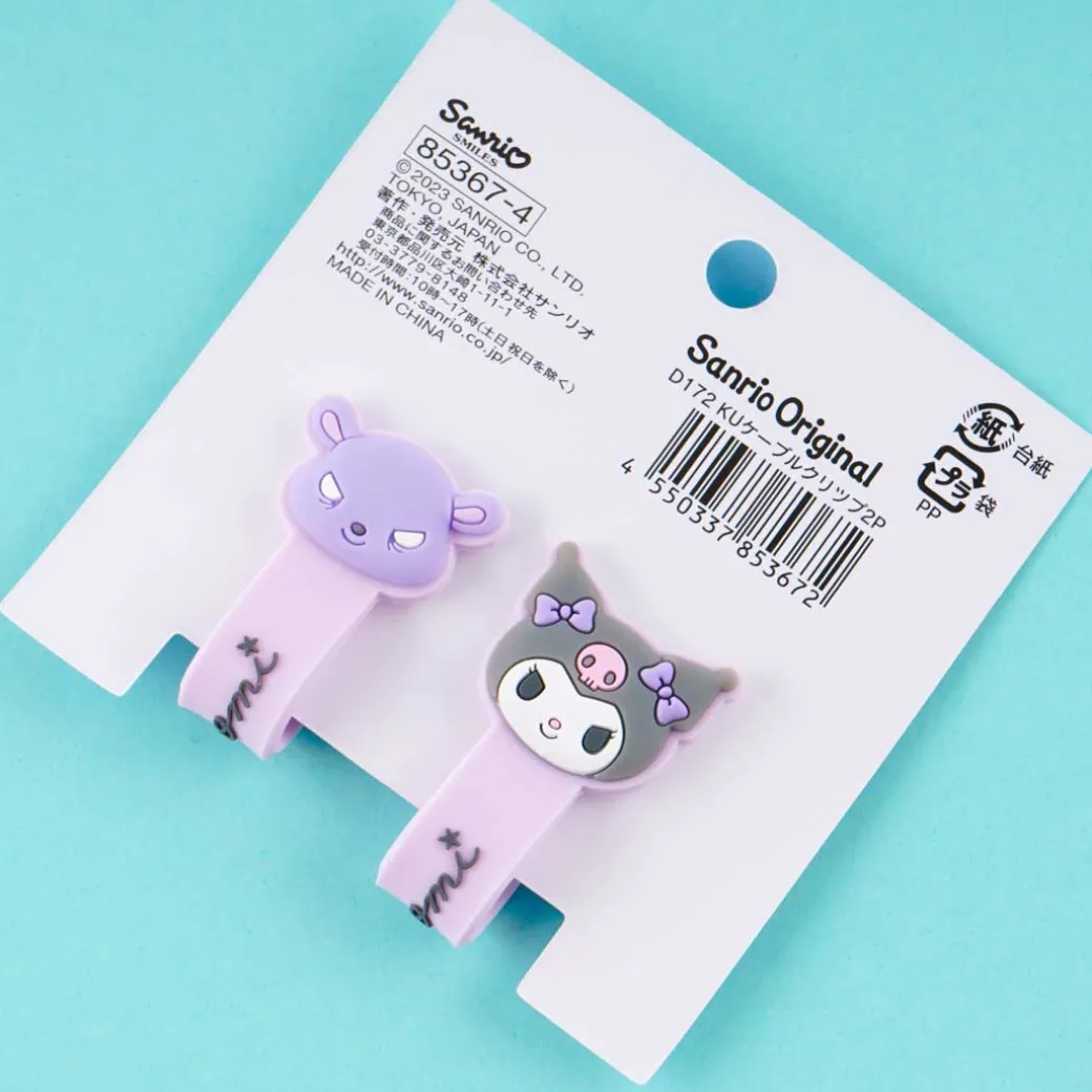 Organize your laptop and phone charger cables by using these super cute organizers! The set is decorated with die-cut charms of Kuromi and her sidekick, Baku! The kawaii cable clips come with snap button closures.
