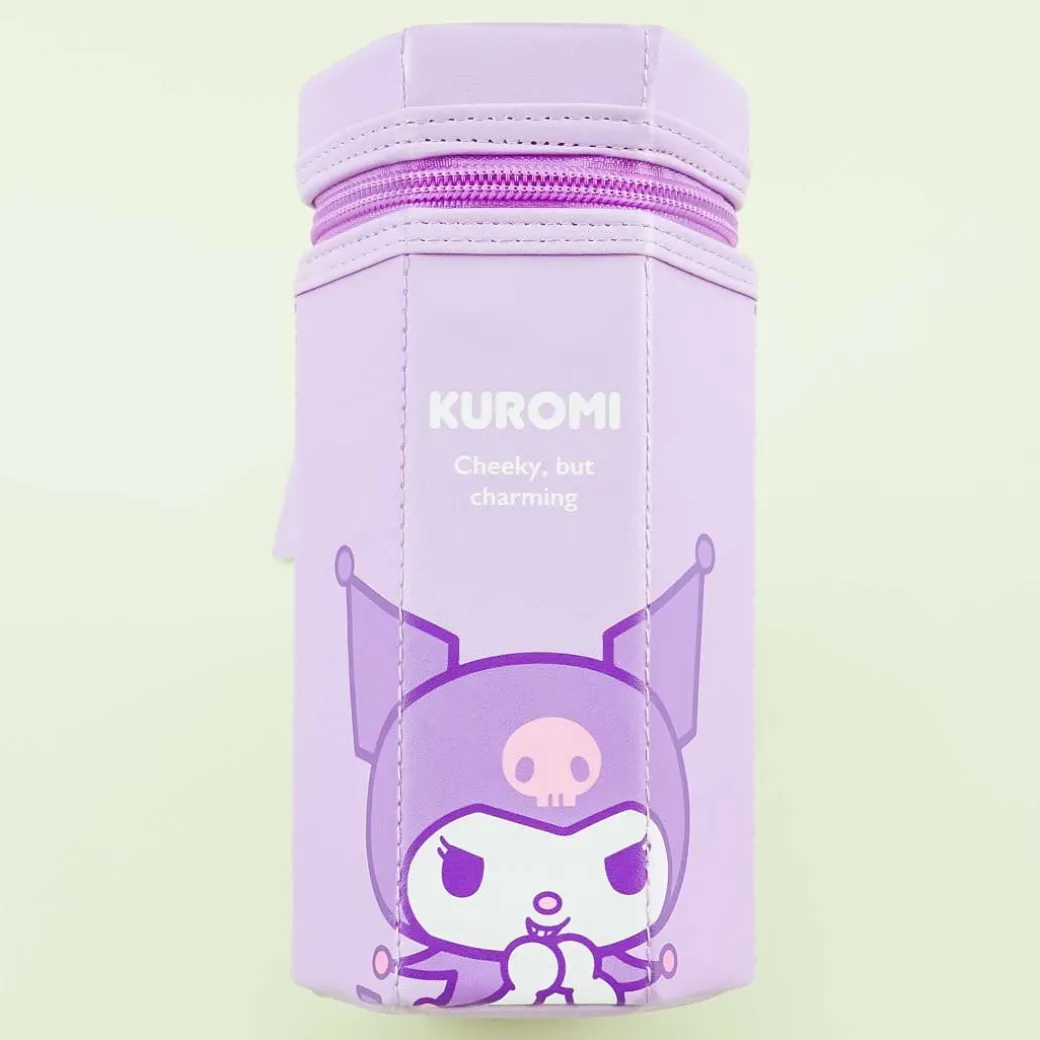 - A cute standing pen case illustrated with Kuromi with a cheeky expression on her face