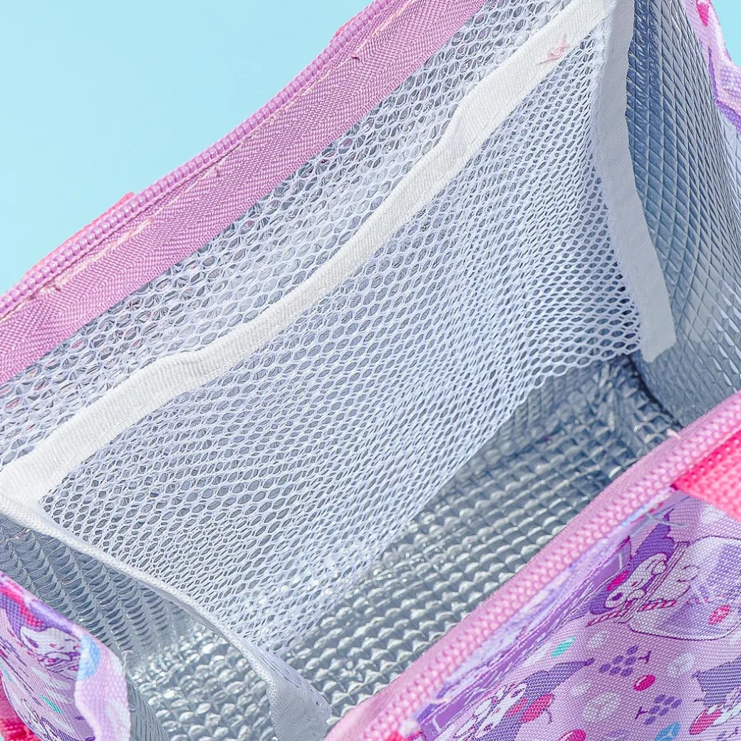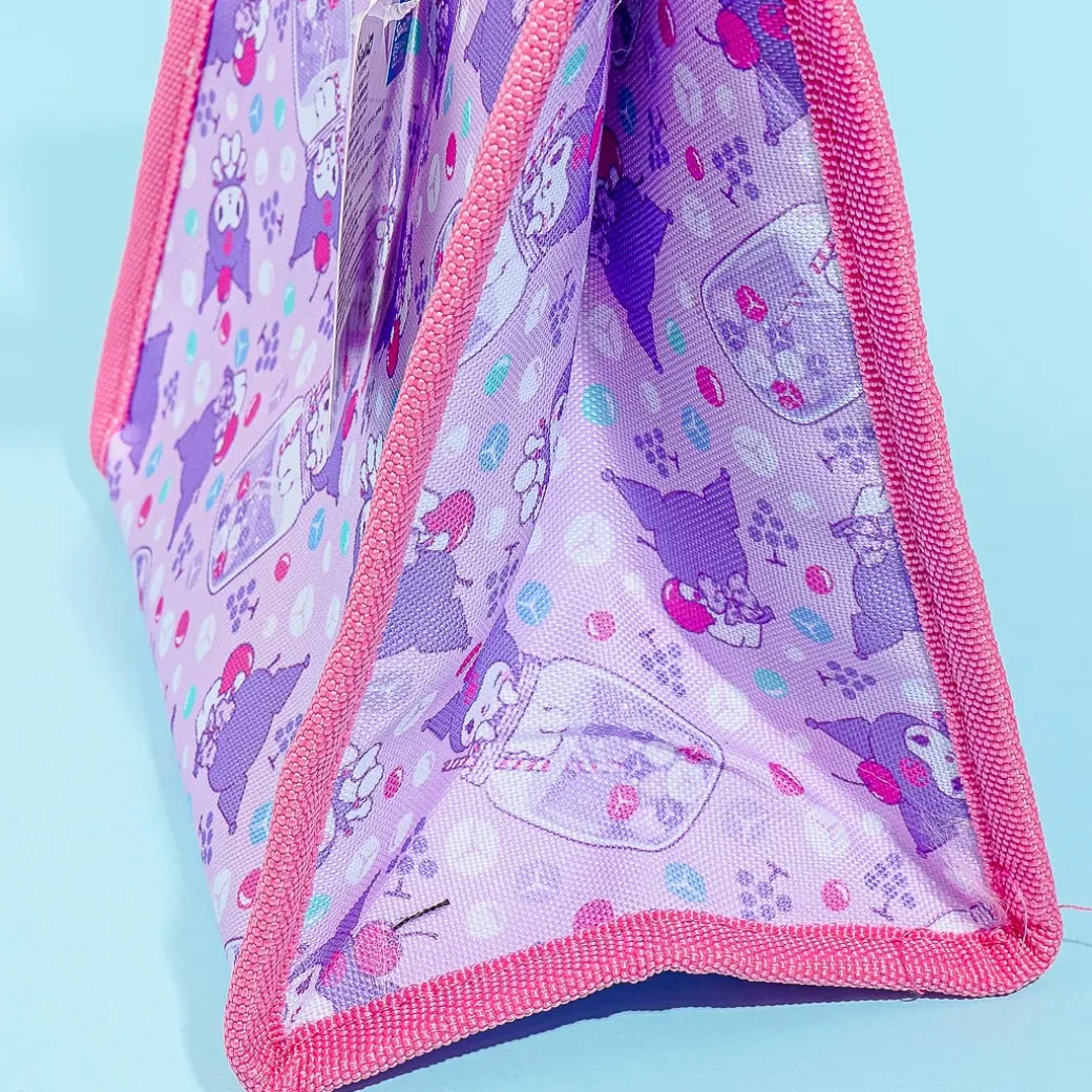 Use this super kawaii tote bag to bring your bento box and drinks. It’s covered in prints of Kuromi playing with cherry soda! This tote bag has an aluminum lining to keep your meal nice and fresh.