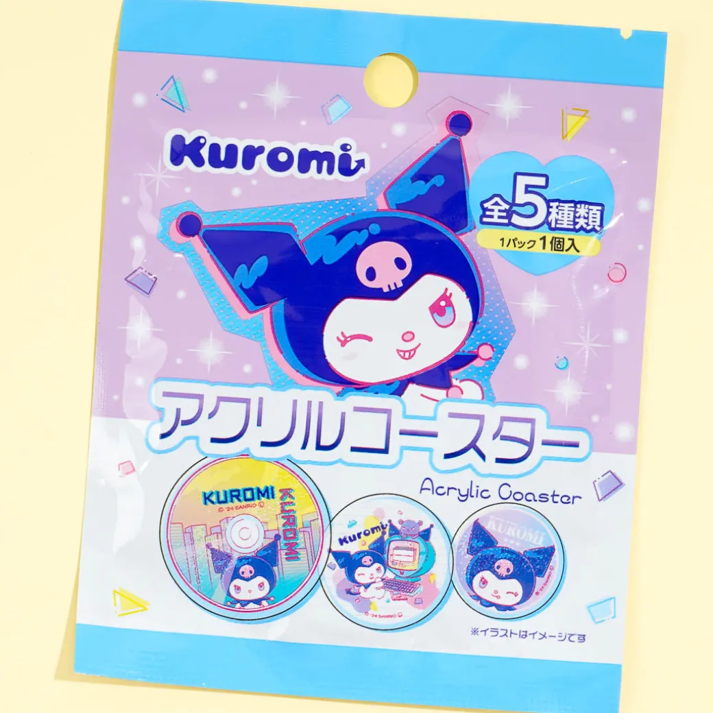This super kawaii collectible acrylic coaster showcases city-pop prints of Kuromi. Add it to your collection of Kuromi goodies! You’ll get a random coaster from a set of 5 different designs when you order.