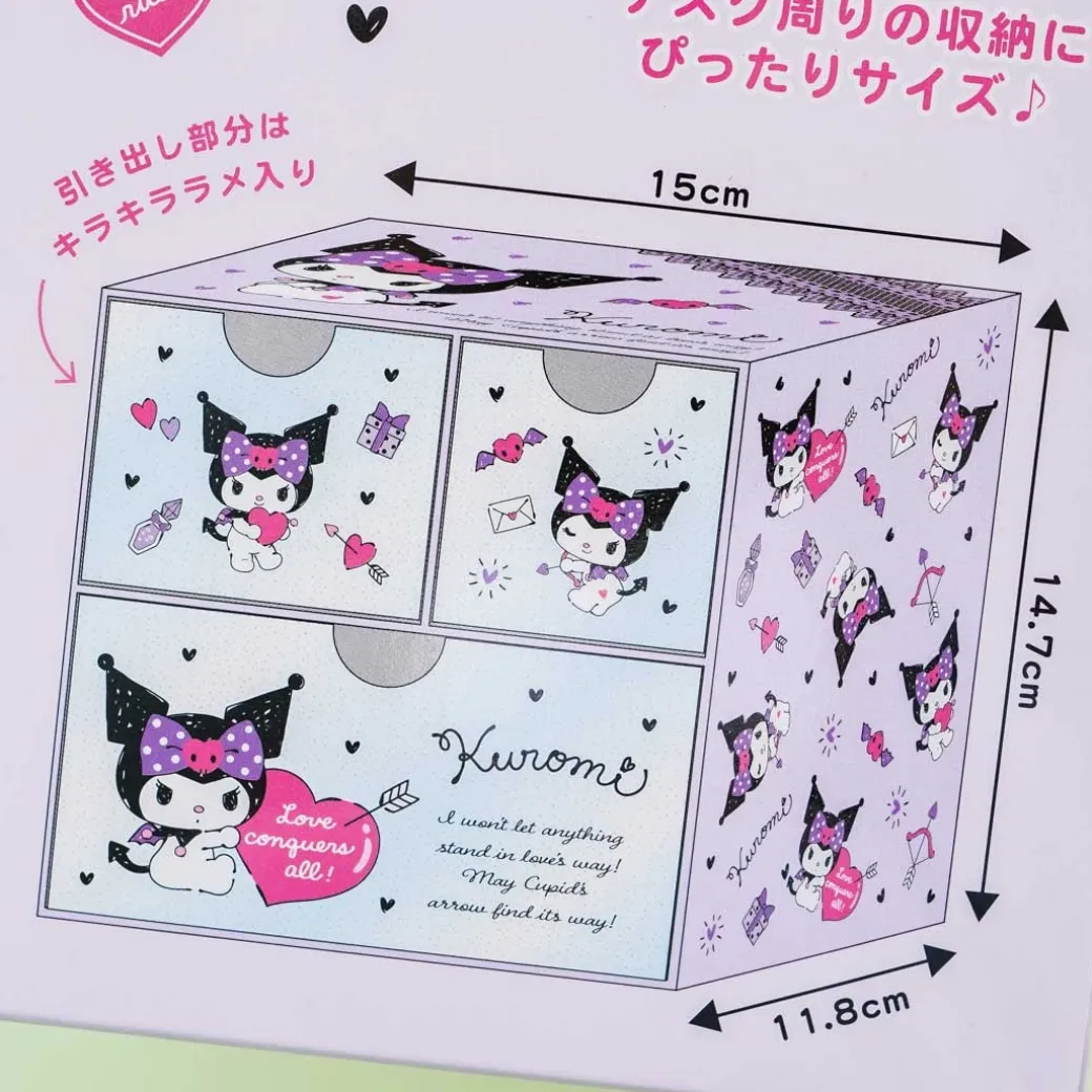 - A kawaii desktop organizer decorated with prints of Kuromi playing cupid
