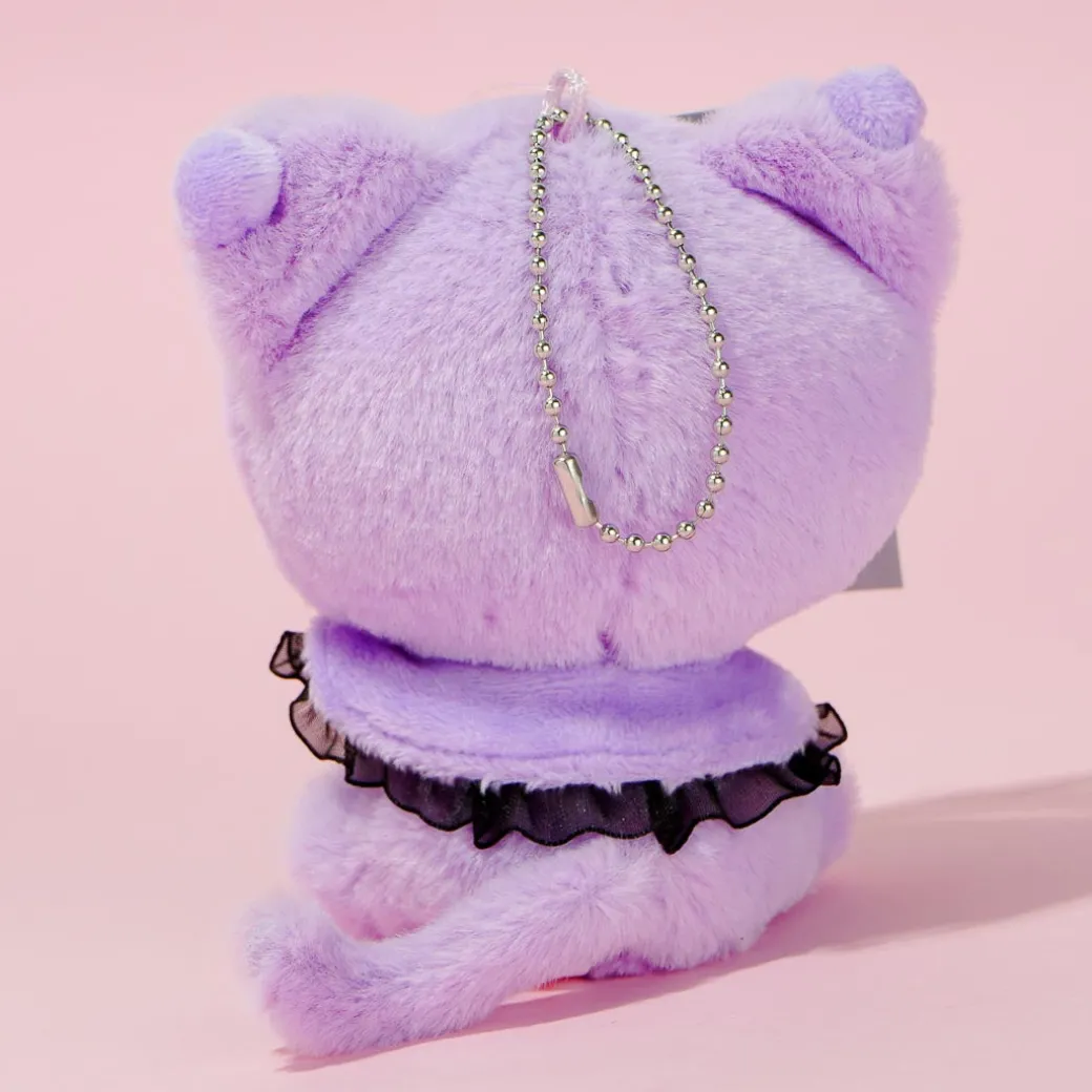 Kawaii-fy your favorite backpack by attaching this Kuromi plushie charm! This cutie is wearing a purple cat hood onesie. You can also have fun playing with it!