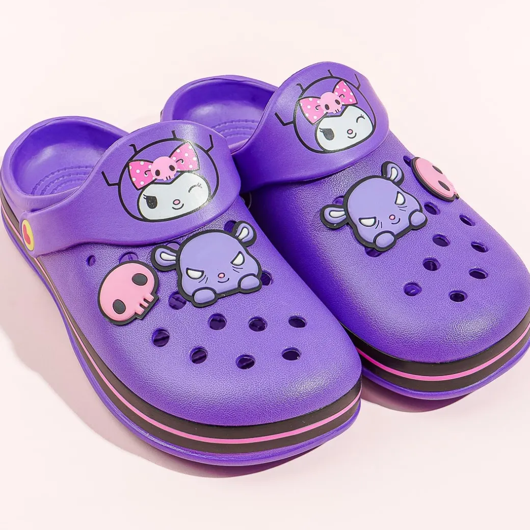 Take a relaxing stroll in the park while wearing these kawaii large-sized sandals! The purple pair has illustrations of Kuromi and cute rubber charms of pink skulls and Baku, Kuromi’s sidekick! Each slipper is made from a special rubber-like synthetic resin called EVA.