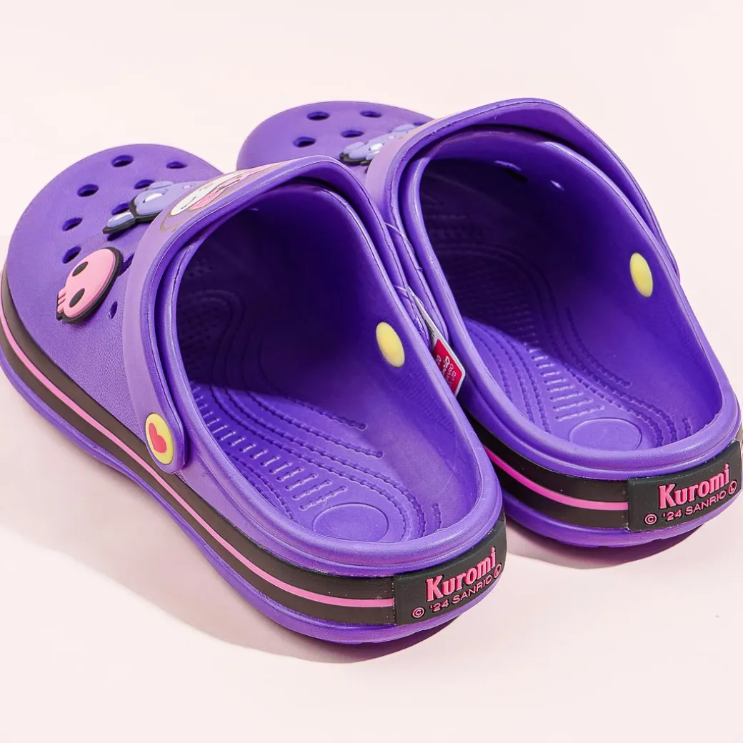 Look super cute even when at home by wearing this kawaii purple pair! These medium-sized sandals are made with EVA — a special rubber-like resin material. Each slipper is decorated with cute illustrations of Kuromi and decked with rubber charms of Baku and pink skulls.
