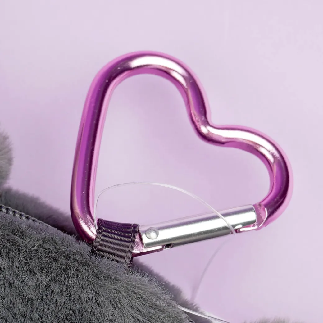 - Comes with a zipper closure and a heart-shaped metal carabiner