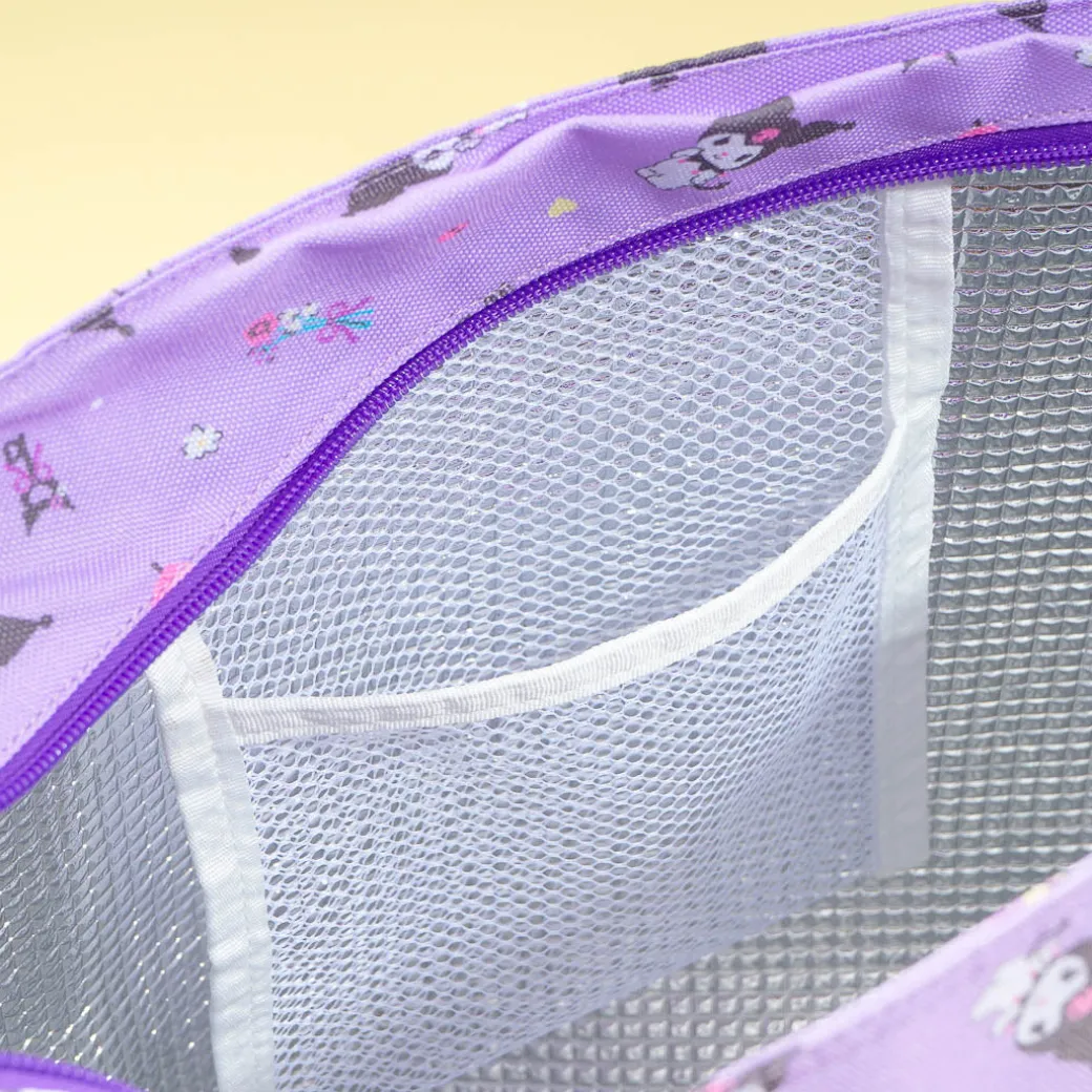 Take this super cute insulated bag with you to your next picnic! Its roomy compartment lined with aluminum can keep all your packed food and drinks fresh even while you’re outdoors! This kawaii shoulder bag is also decorated with super cute prints of Kuromi and her favorite picnic essentials.