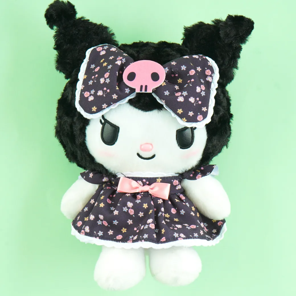This kawaii Kuromi sitting plushie is wearing a black dress and ribbon that has matching floral prints inspired by the lovely blooms of her town, Maryland! Add a dose of cuteness to your bed by placing this cute plushie!