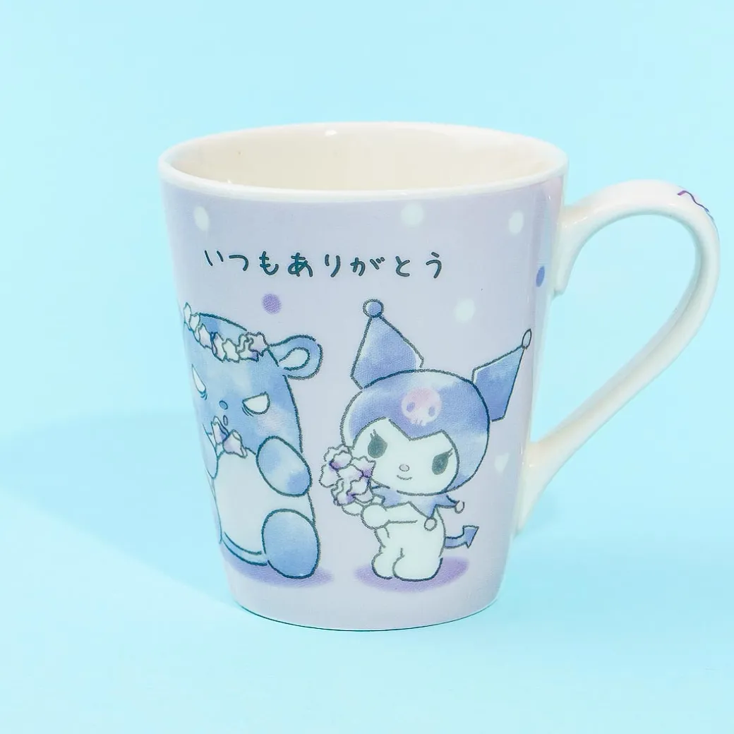 This super cute mug is decorated with kawaii prints of Kuromi and her sidekick Baku doing flower wreaths! Use this to serve your favorite hot coffee or chocolate.