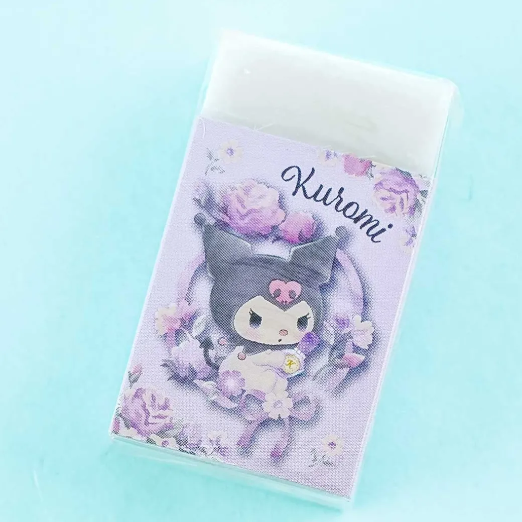 - A kawaii eraser featuring prints of Kuromi and flowers