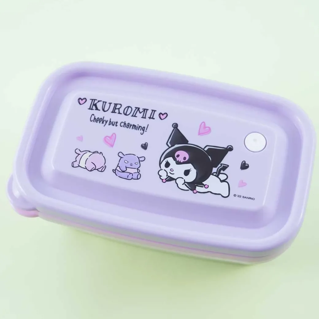 - A cute stackable rectangular food container set featuring Kuromi and her tapir friends